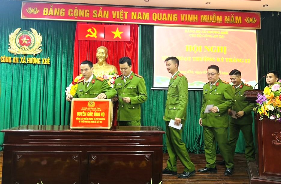Hưởng ứng tinh thần “tương thân, tương ái”, Công an xã Hương Khê đã kêu gọi toàn thể cán bộ, chiến sĩ tích cực tham gia quyên góp nhằm hỗ trợ đồng bào miền Trung và Tây Nguyên sớm vượt qua khó khăn, khắc phục hậu quả thiên tai, ổn định cuộc sống.