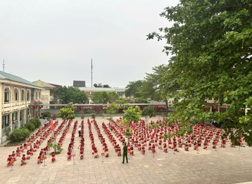 Toàn cảnh buổi tuyên truyền về công tác PCCC và CNCH cho gần 2.000 giáo viên, học sinh tại Trường THCS Chu Văn An vào ngày 11/4/2026