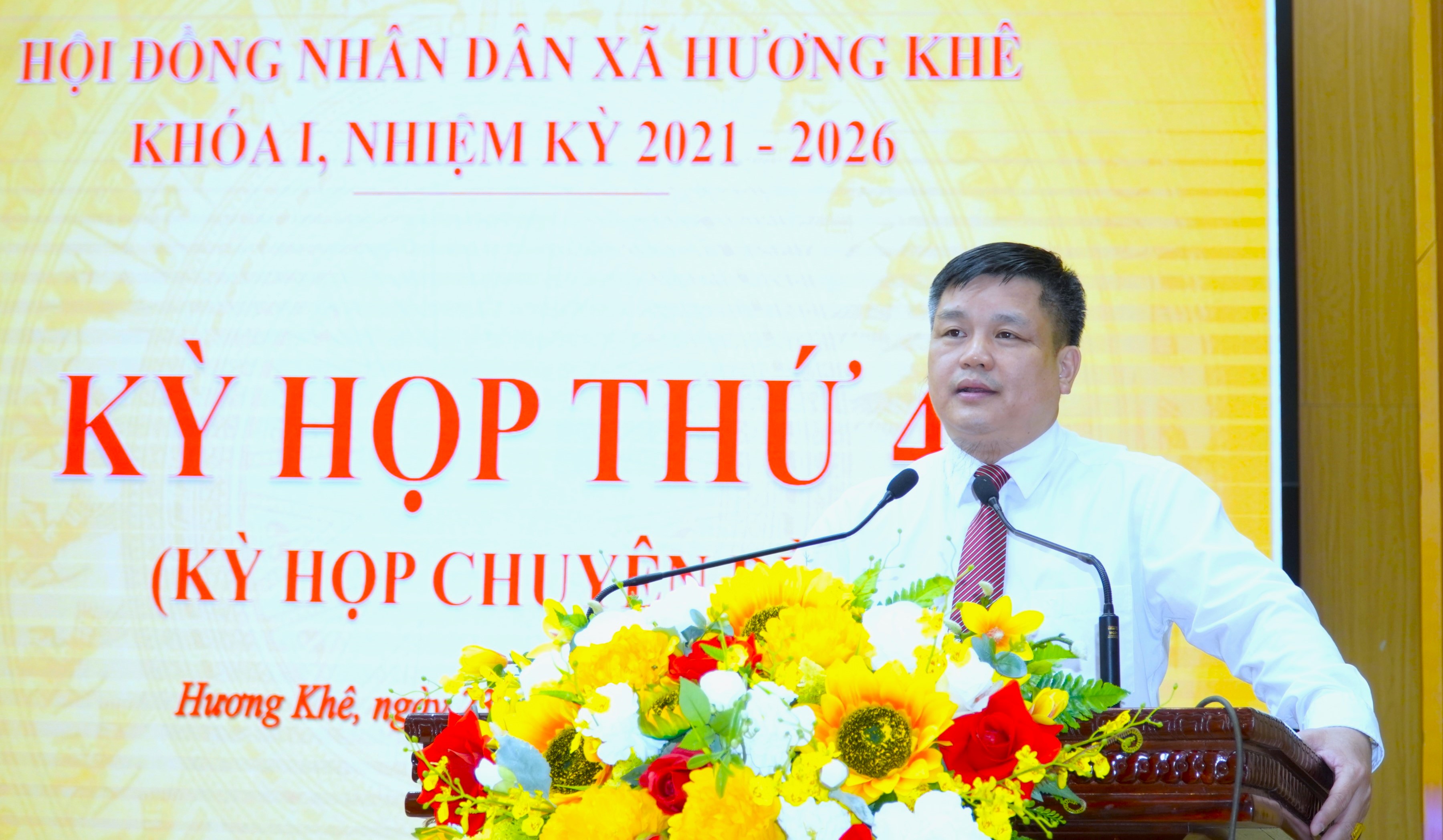 Tại kỳ họp, ông Nguyễn Trọng Vỹ, Ủy viên Ban Thường vụ Đảng ủy, Phó Chủ tịch UBND xã đã trình bày các tờ trình về việc miễn nhiệm chức vụ Phó Chủ tịch UBND xã đối với ông Nguyễn Công Hoan; miễn nhiệm Ủy viên UBND xã đối với ông Nguyễn Công Hoan và ông Trương Quang Thụy, nguyên Trưởng phòng Kinh tế thuộc UBND xã và tờ trình bầu bổ sung Phó Chủ tịch UBND xã, nhiệm kỳ 2021 – 2026.