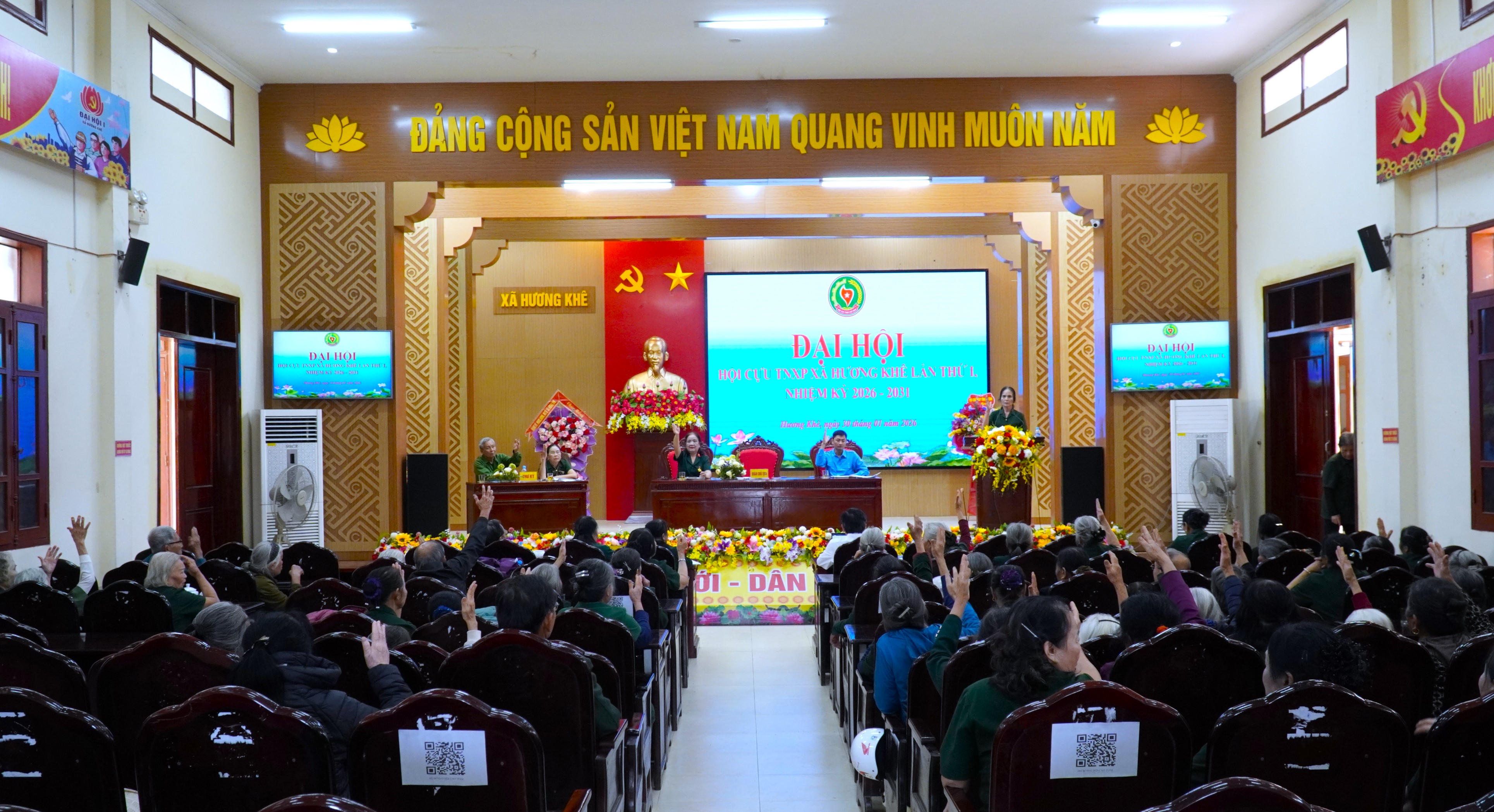 Đại biểu biểu quyết bầu BCH Hội Cựu TNXP xã nhiệm kỳ 2026 - 2031.