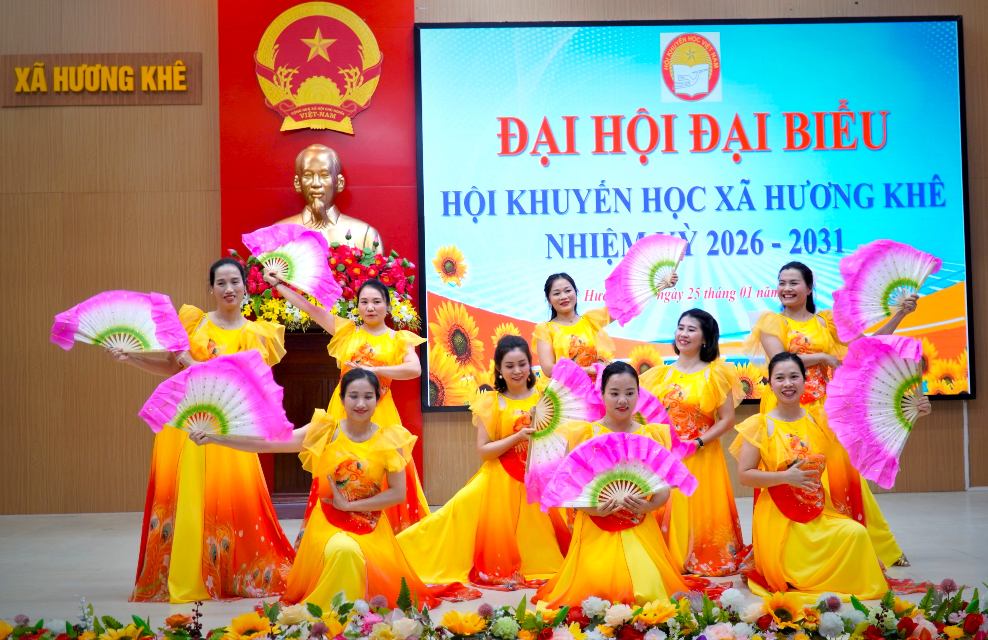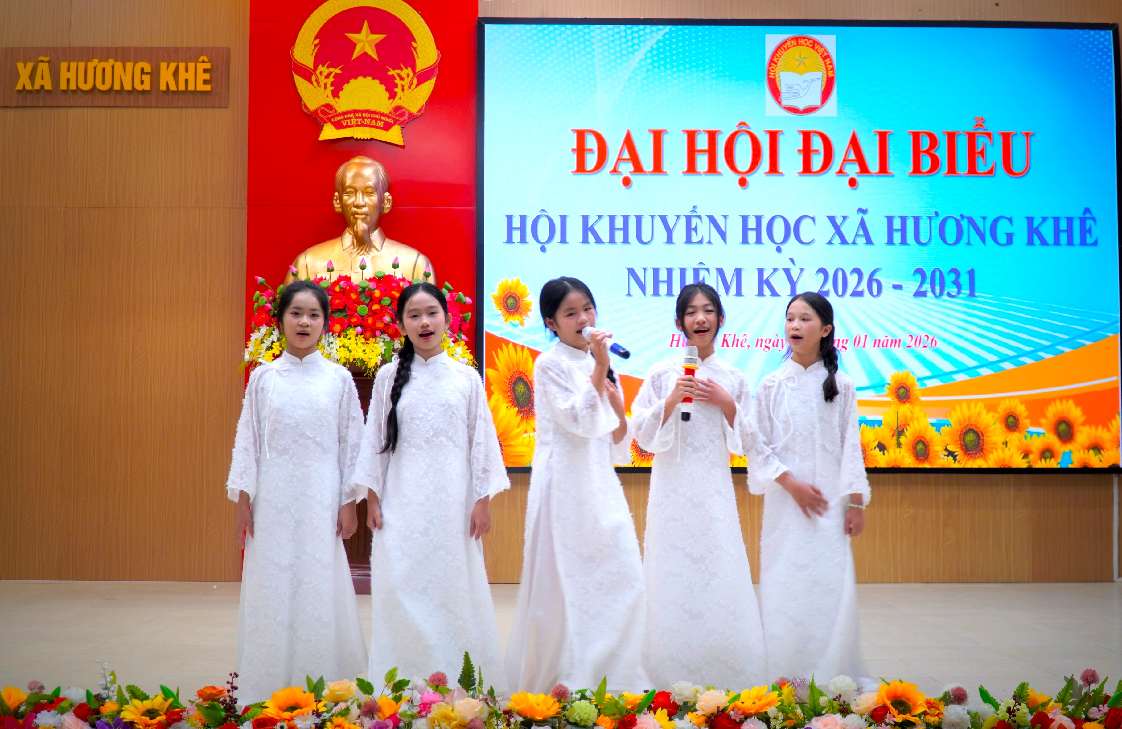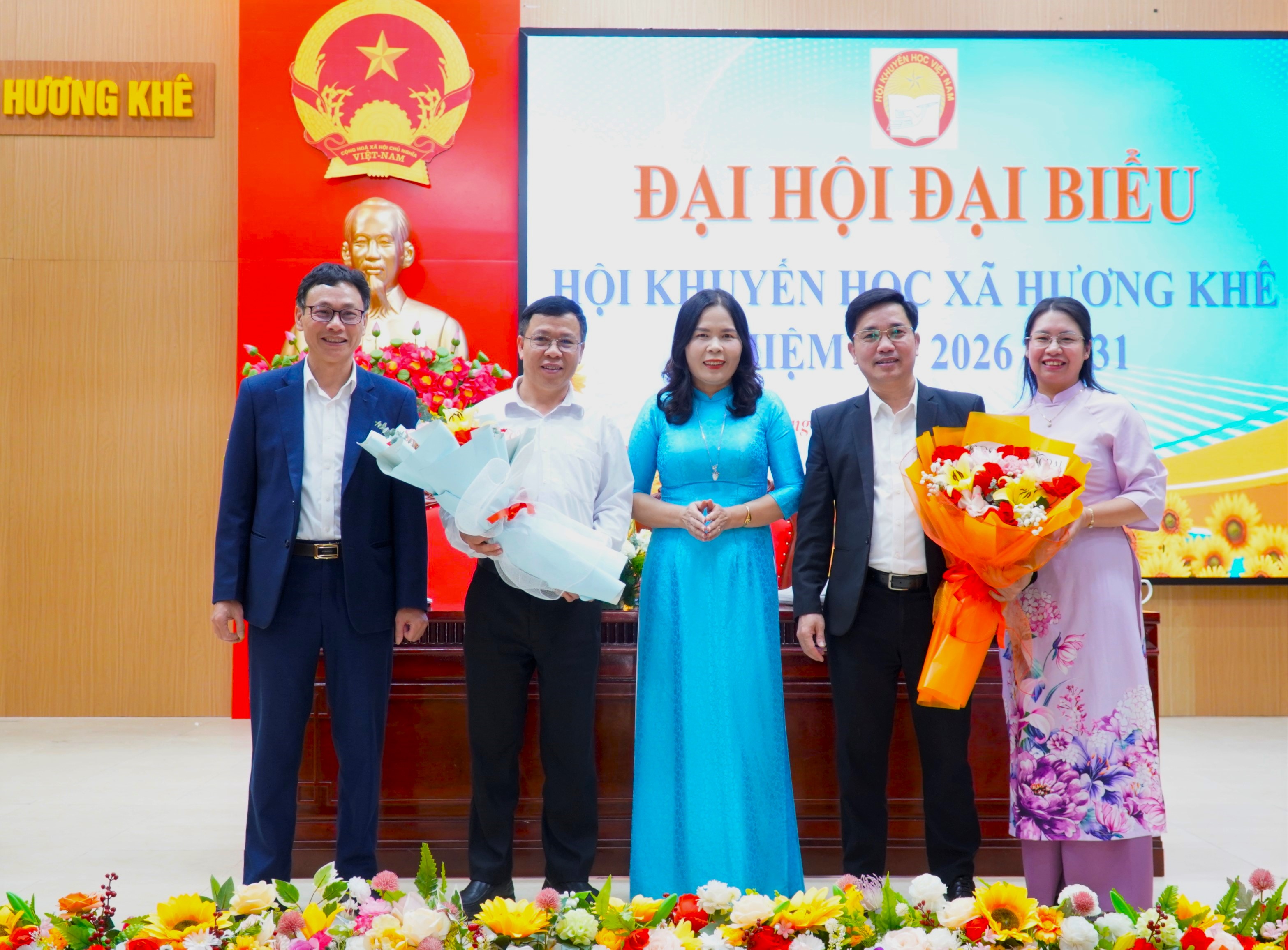 Tặng hoa cho các đồng chí không tái cử BCH Hội Khuyến học xã nhiệm kỳ 2026 - 2031.