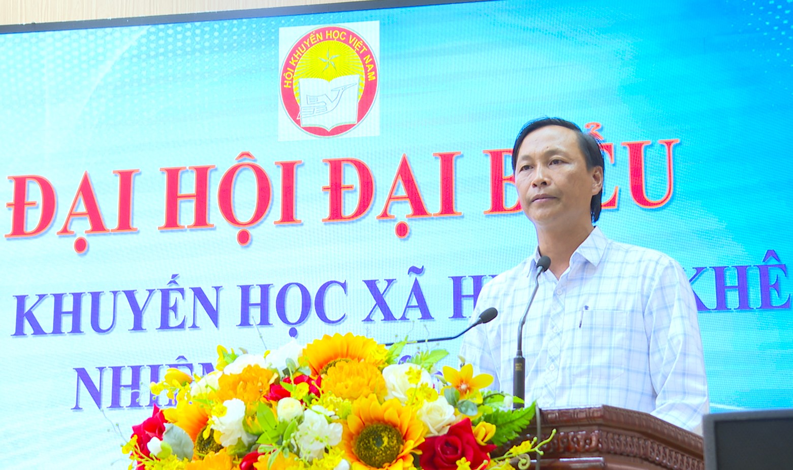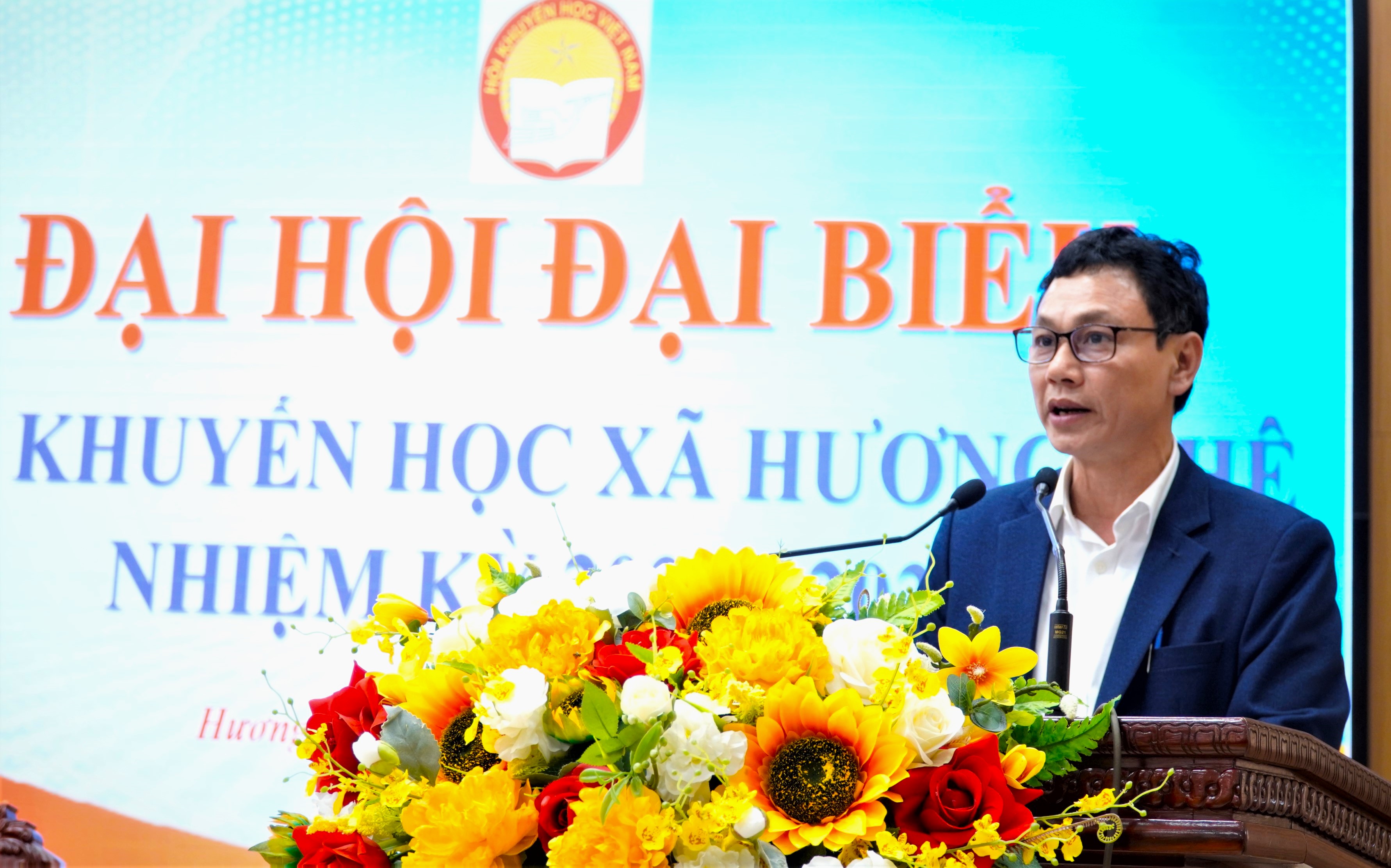 Thầy giáo Nguyễn Ánh, Hiệu trưởng Trường THCS Chu Văn An, Phó Chủ tịch Hội Khuyến học xã nhiệm kỳ 2020 - 2025 khai mạc đại hội.