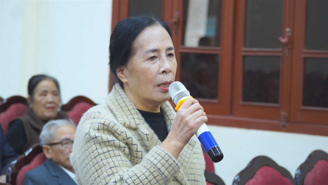 Bà Trần Thị Hiền Lê, cử thi thôn 4 phát biểu.