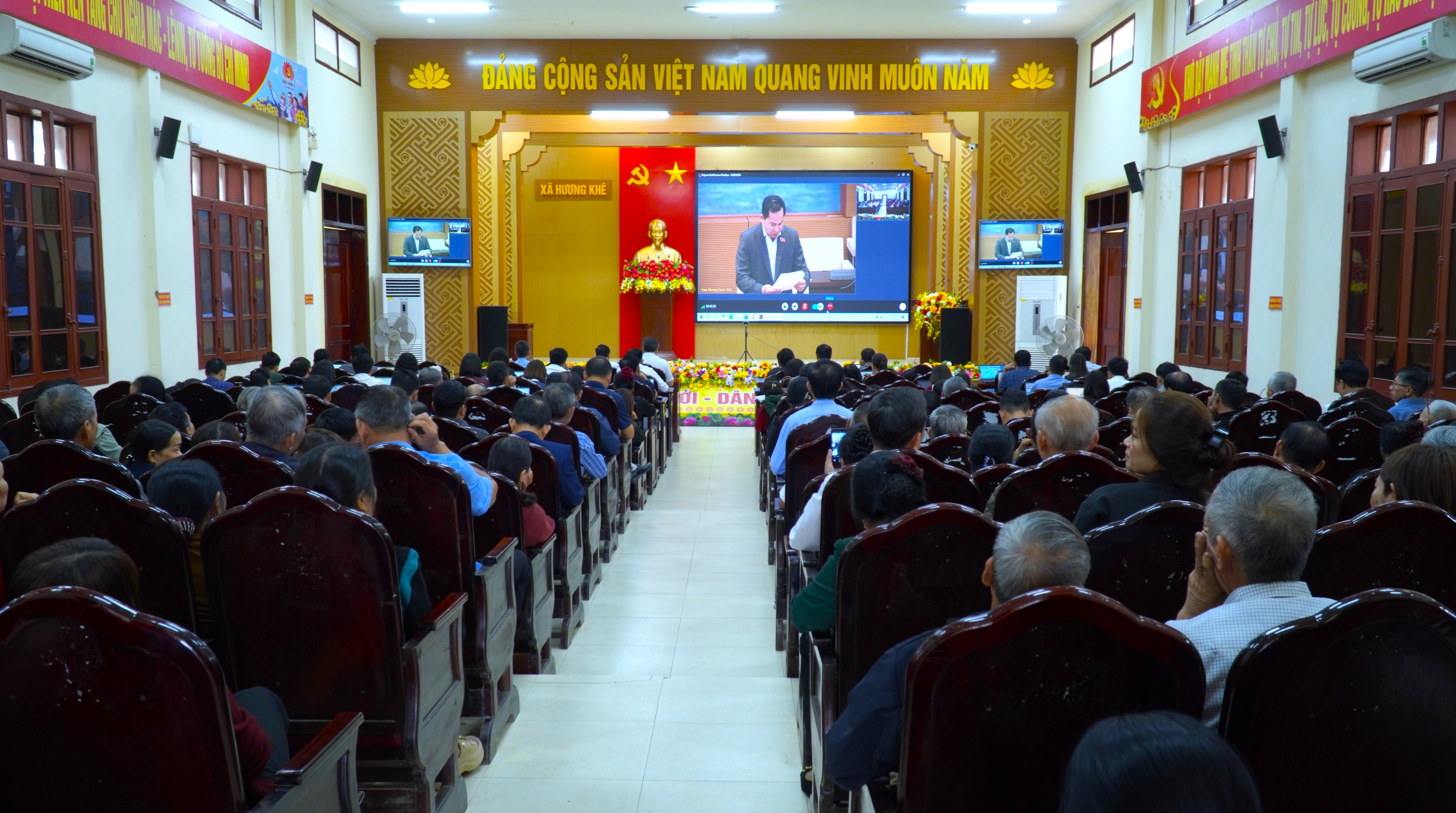 Tại điểm cầu xã Hương Khê có đồng chí Nguyễn Thế Hùng – Phó Bí thư Thường trực Đảng ủy xã; đồng chí Trần Quốc Bảo – Phó Bí thư Đảng ủy, Chủ tịch UBND xã tham dự.
