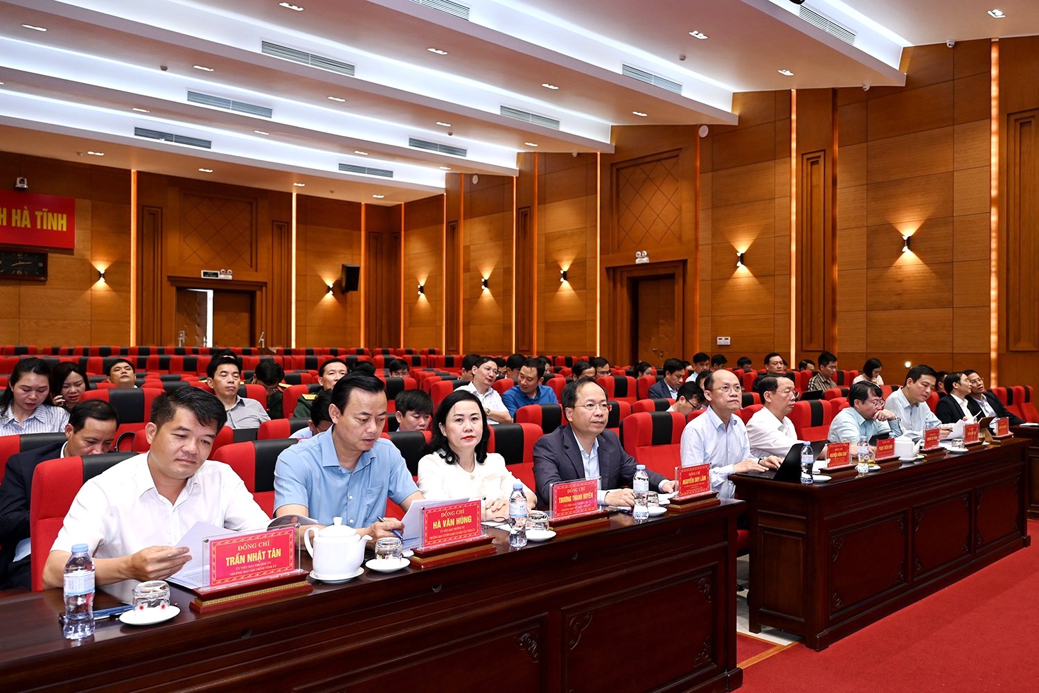 Các đồng chí Thường trực Tỉnh ủy và đại biểu dự hội nghị điểm cầu tại tỉnh Hà Tĩnh.