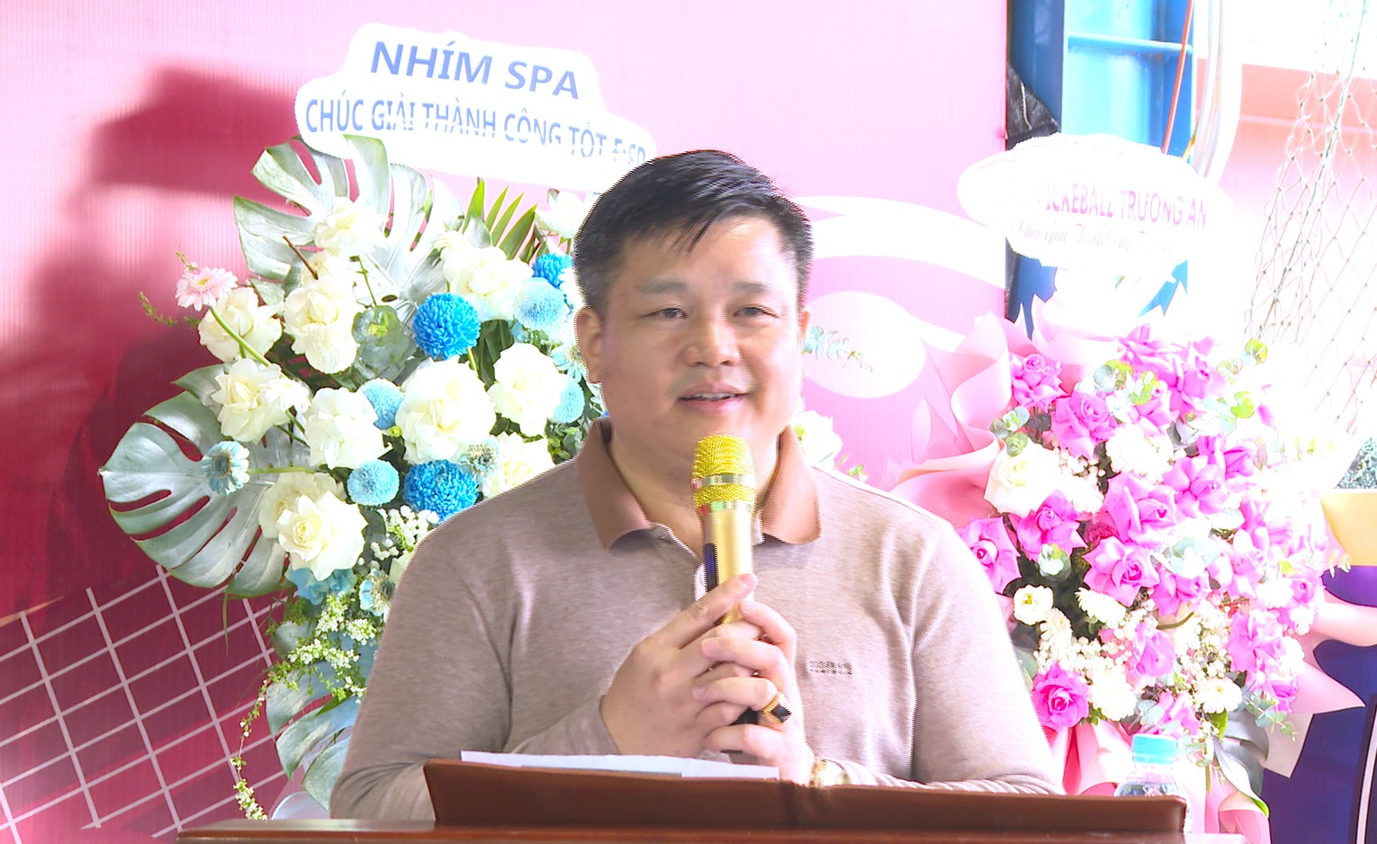 Ban tổ chức tặng hoa cho các nhà tài trợ chính.