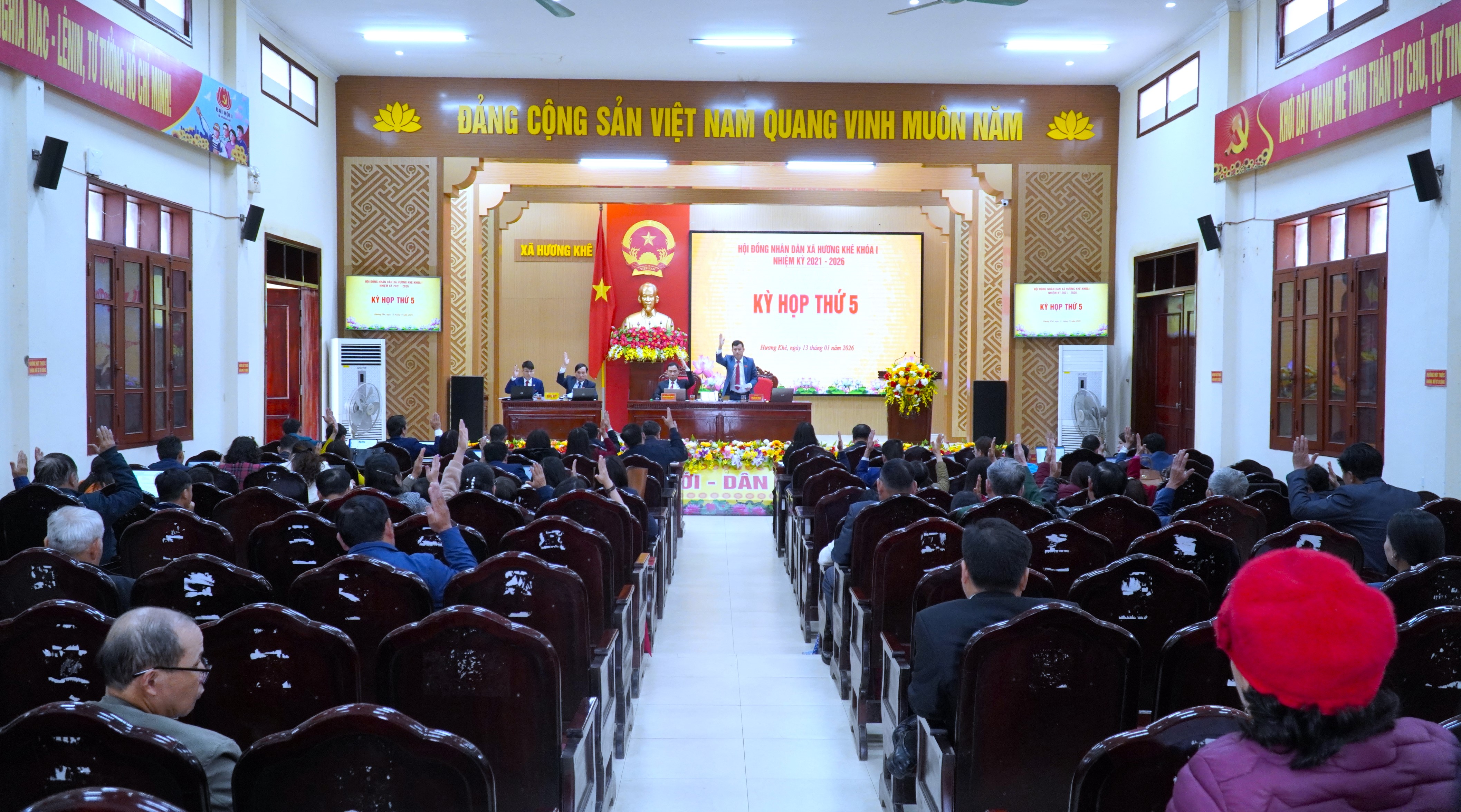 Với tinh thần dân chủ, trách nhiệm cao, kỳ họp đã thông qua 5 nghị quyết quan trọng về mục tiêu, nhiệm vụ phát triển kinh tế – xã hội, quốc phòng – an ninh năm 2026; phân bổ thu, chi ngân sách năm 2026; kế hoạch đầu tư công năm 2026 và giai đoạn 2026 – 2030; kế hoạch phát triển kinh tế – xã hội 5 năm giai đoạn 2026 – 2030; giao biên chế cán bộ, công chức và chỉ tiêu lao động năm 2026.