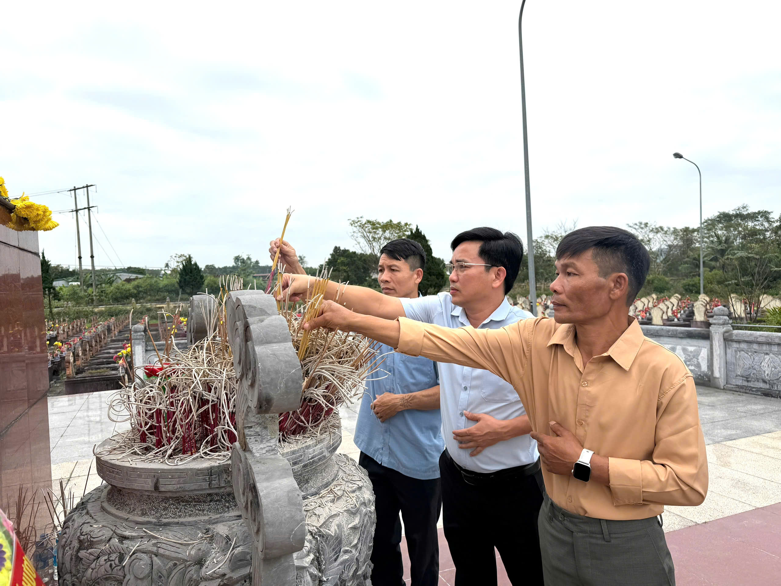 Cùng thời gian này, các đoàn công tác của xã cũng đã đến dâng hương tại Nghĩa trang Liệt sỹ và các nhà bia tưởng niệm liệt sỹ trên địa bàn xã để tưởng nhớ, tri ân các anh hùng liệt sỹ đã anh dũng hy sinh vì độc lập, tự do của Tổ quốc.