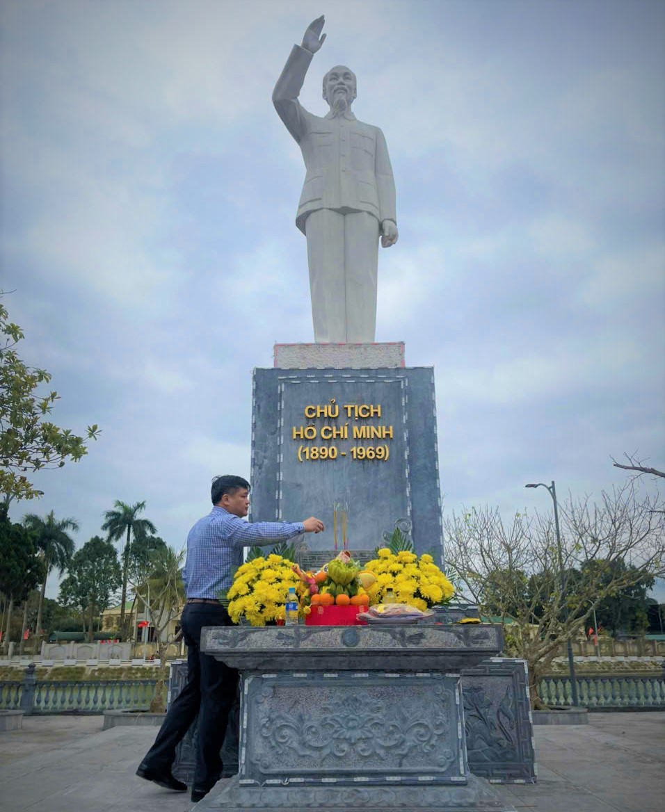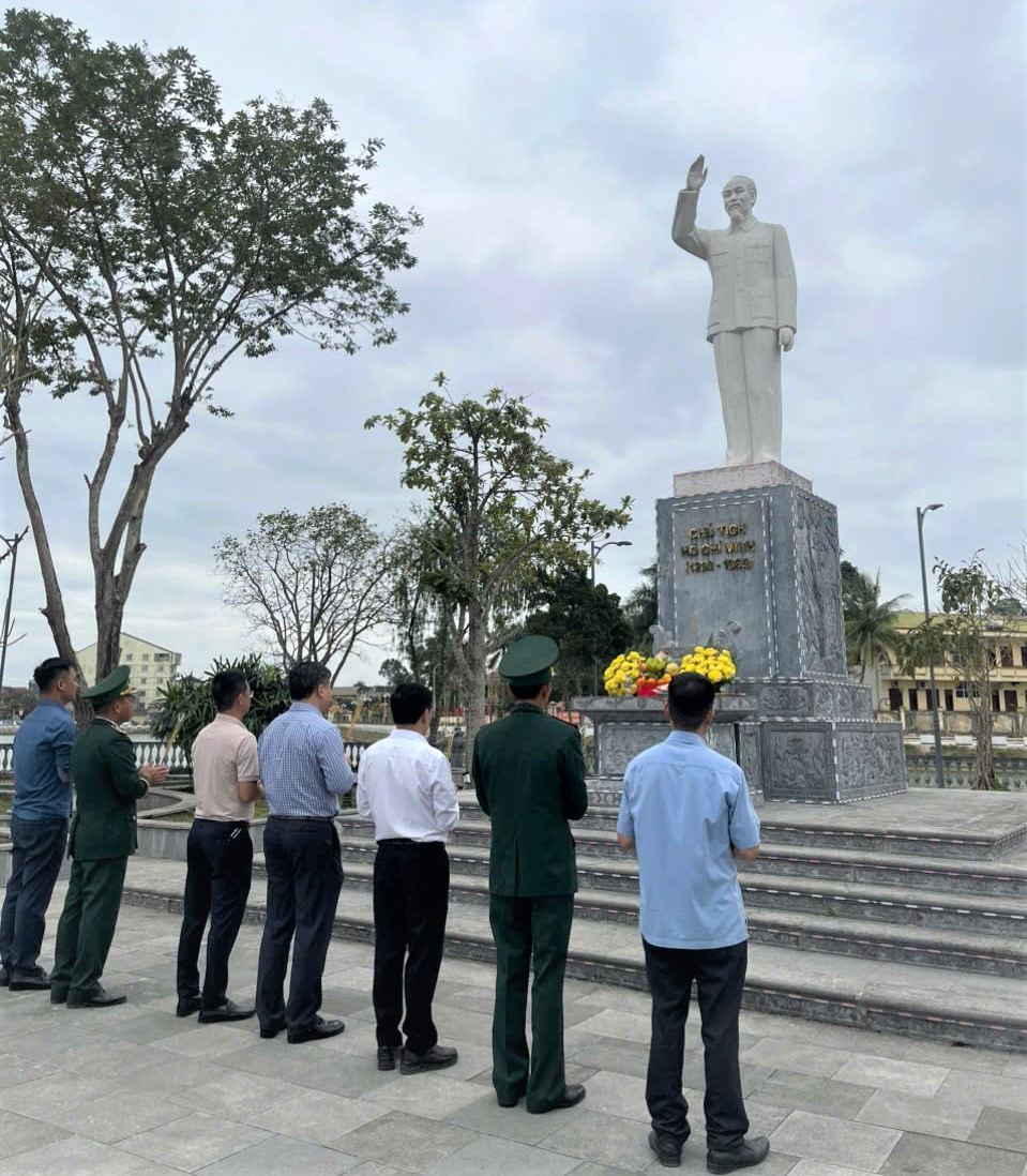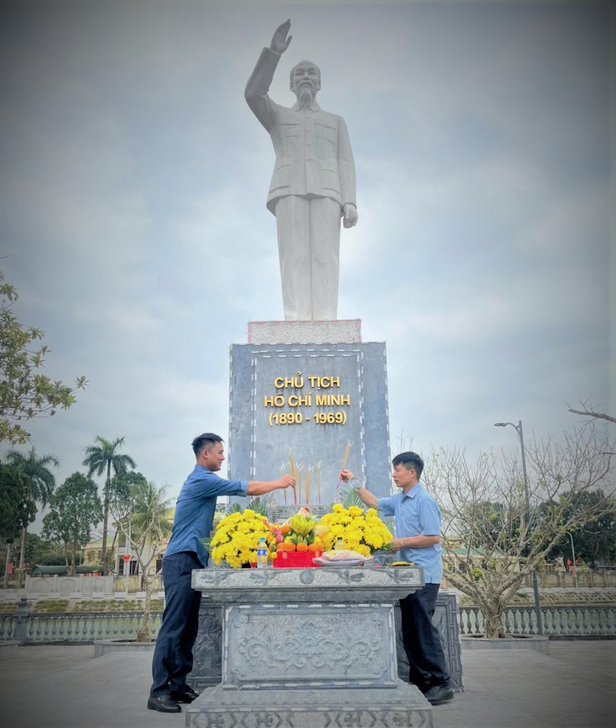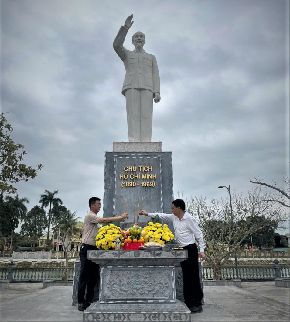 Tại Tượng đài Bác Hồ ở đảo Hồ Bình Sơn, đoàn lãnh đạo xã do đồng chí Trần Quốc Bảo — Phó Bí thư Đảng ủy, Chủ tịch UBND xã — làm trưởng đoàn, cùng các đồng chí trong Ban Thường vụ, Ban Chấp hành Đảng bộ xã đã thành kính dâng hoa, dâng hương tưởng niệm Chủ tịch Hồ Chí Minh.