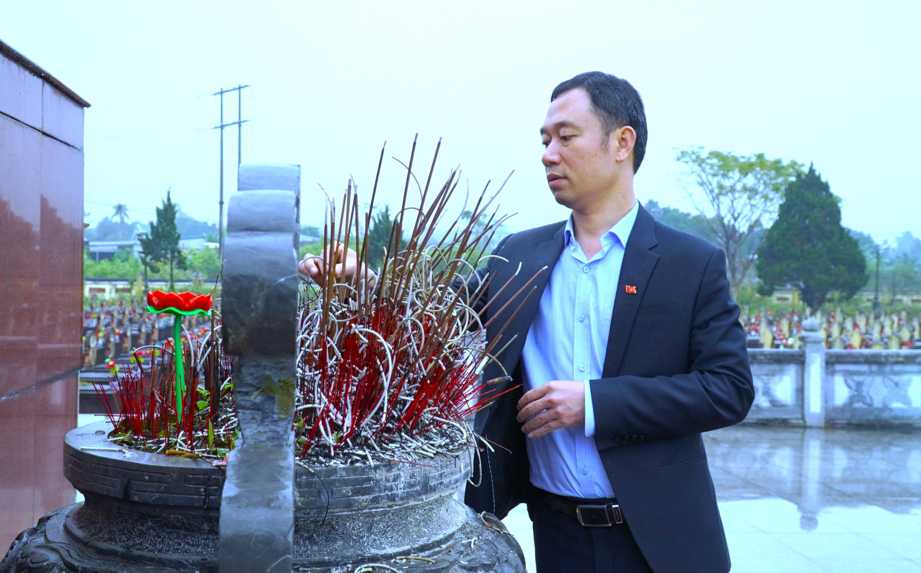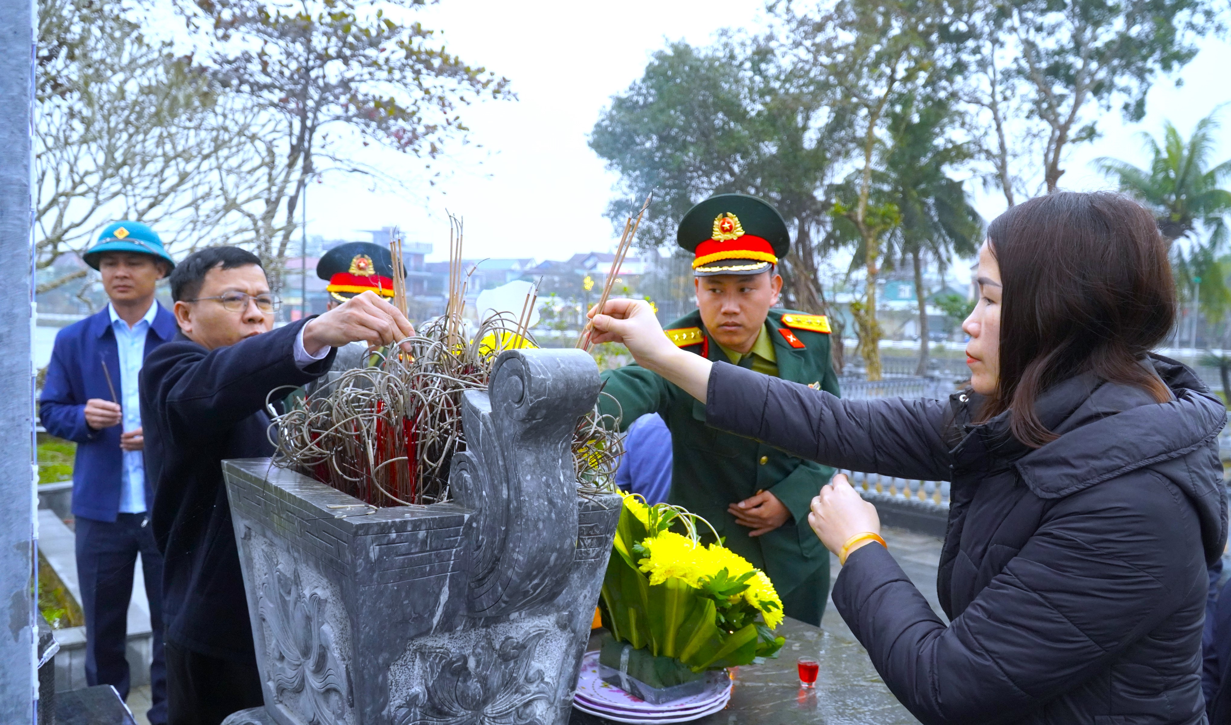 Đoàn dâng hương tại Nghĩa trang Liệt sĩ Hương Khê.