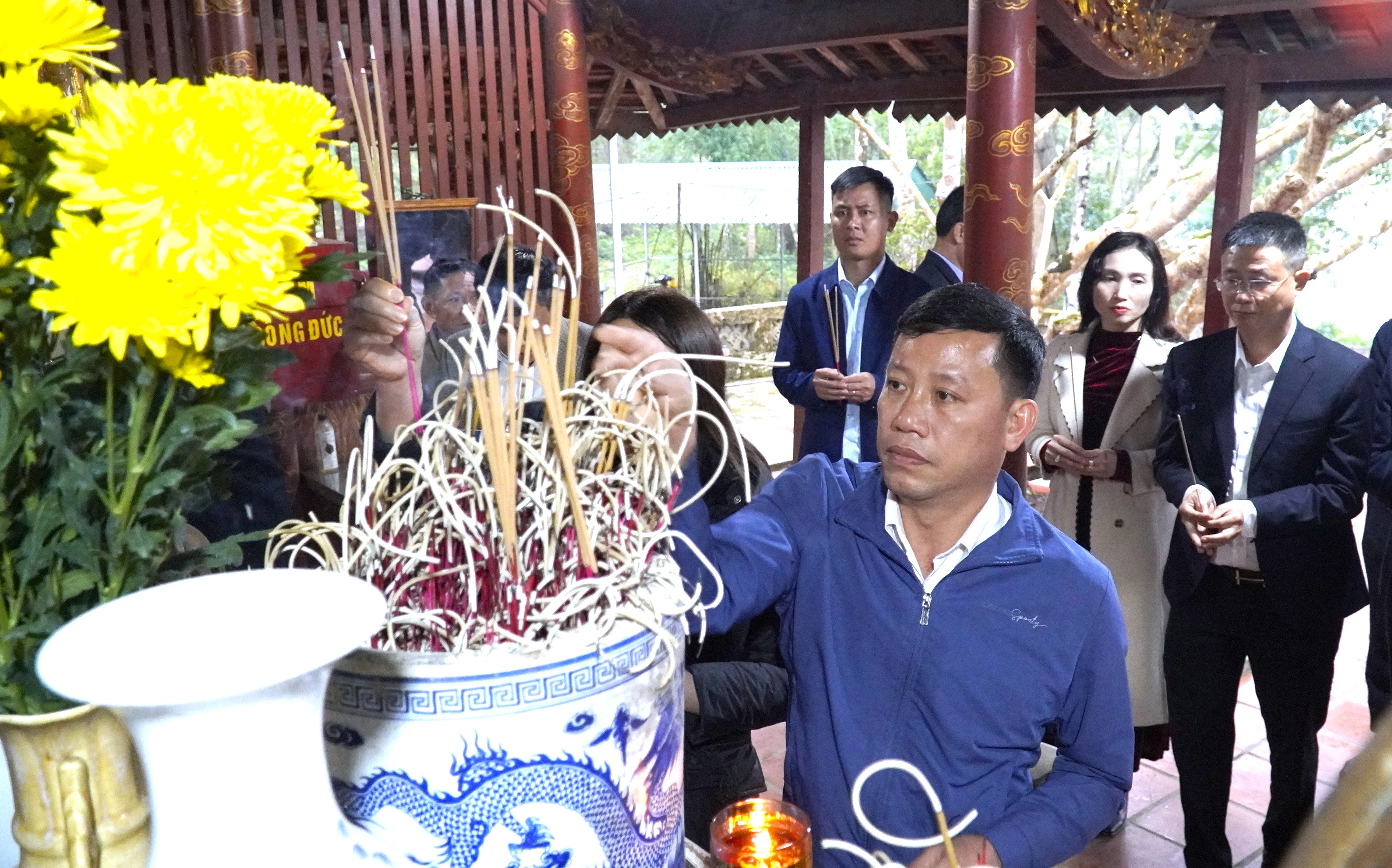 Đoàn đã lần lượt tổ chức lễ dâng hoa, dâng hương tại Nghĩa trang Liệt sĩ Hương Khê, Di tích lịch sử Rộôc Cồn và Tượng đài Chủ tịch Hồ Chí Minh tại đảo Hồ Bình Sơn. Trong không khí trang nghiêm, thành kính và xúc động, các đại biểu đã kính cẩn nghiêng mình, bày tỏ lòng biết ơn sâu sắc và tri ân vô hạn đối với công lao to lớn của các Anh hùng Liệt sĩ – những người con ưu tú của quê hương đã anh dũng chiến đấu, hy sinh vì sự nghiệp đấu tranh giải phóng dân tộc, thống nhất đất nước, vì độc lập, tự do của Tổ quốc và hạnh phúc của Nhân dân.