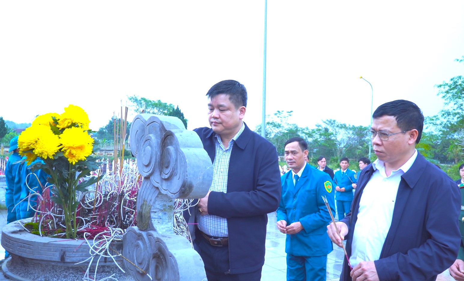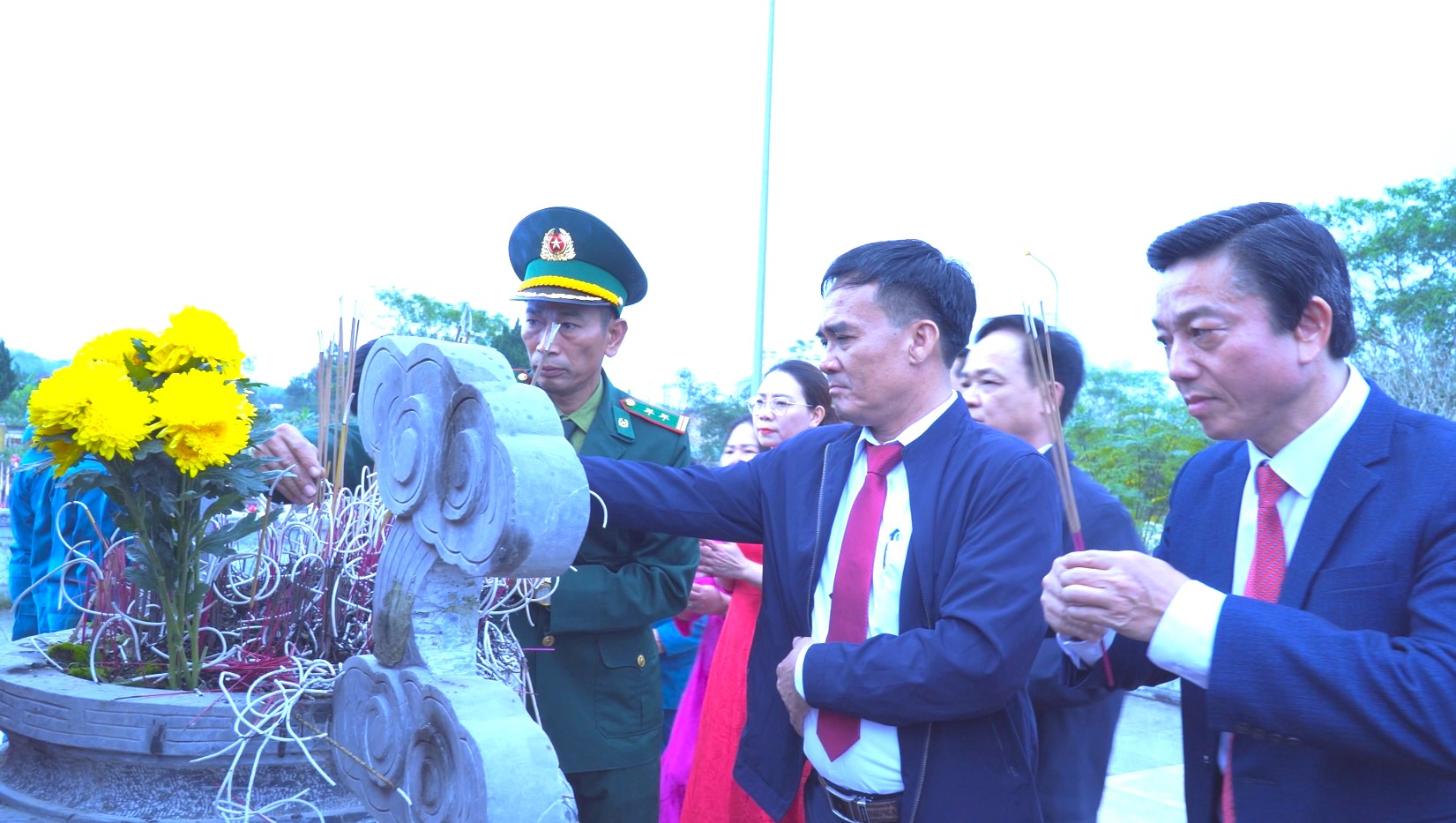 Trong không khí trang nghiêm, thành kính, các đồng chí lãnh đạo và đại biểu đã kính cẩn nghiêng mình dâng hoa, dâng hương, bày tỏ lòng biết ơn sâu sắc đối với các Anh hùng liệt sĩ – những người con ưu tú của quê hương đã anh dũng hy sinh vì sự nghiệp giải phóng dân tộc, thống nhất đất nước, vì độc lập, tự do của Tổ quốc và hạnh phúc của Nhân dân.