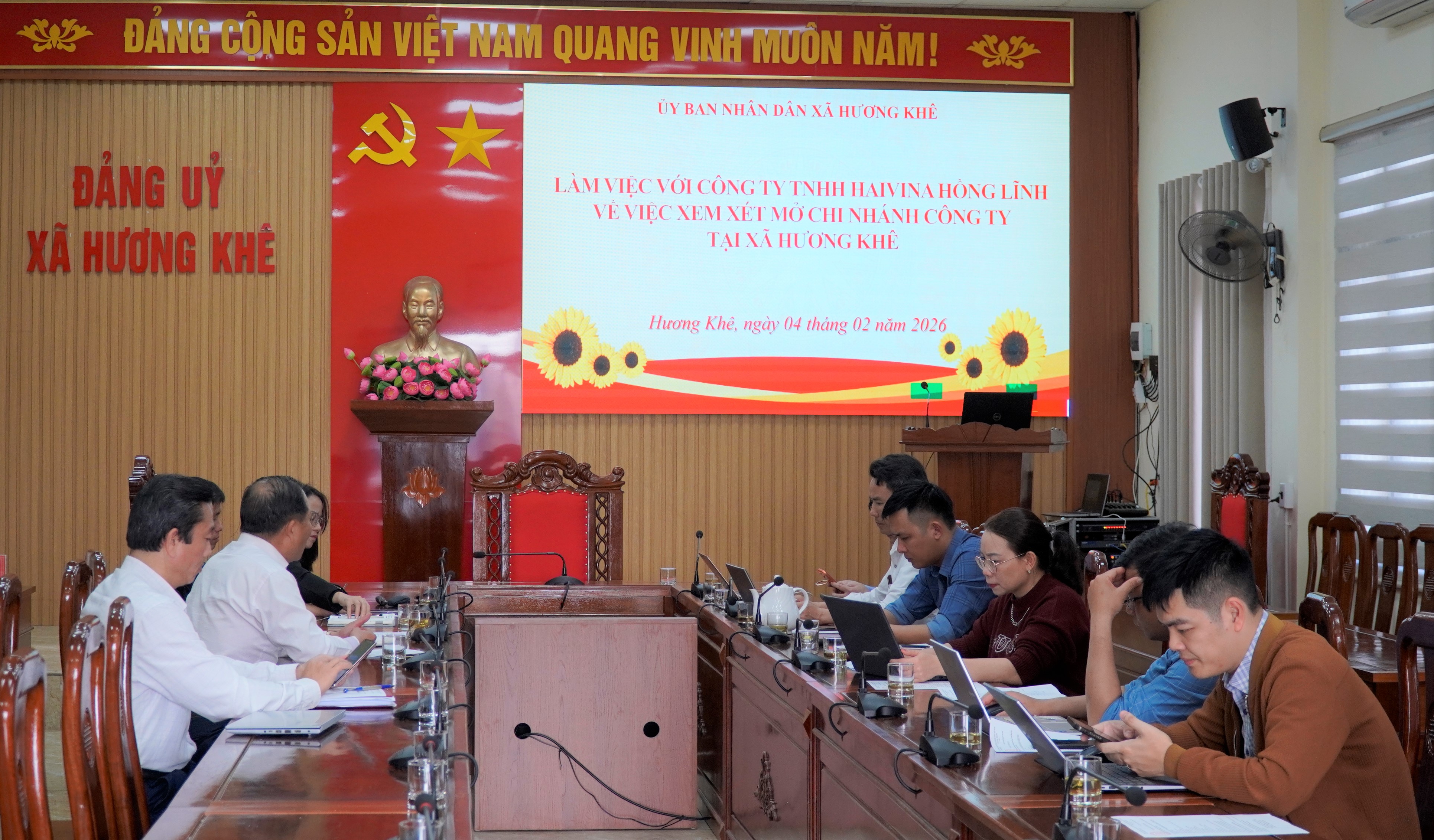 Tham dự buổi làm việc có đại diện Ủy ban MTTQ xã, Ban Xây dựng Đảng, các ban, ngành liên quan của xã; đại diện Công ty TNHH Haivina Hồng Lĩnh và ông Dương Đình Huân – Giám đốc Công ty TNHH Hoàng Anh.