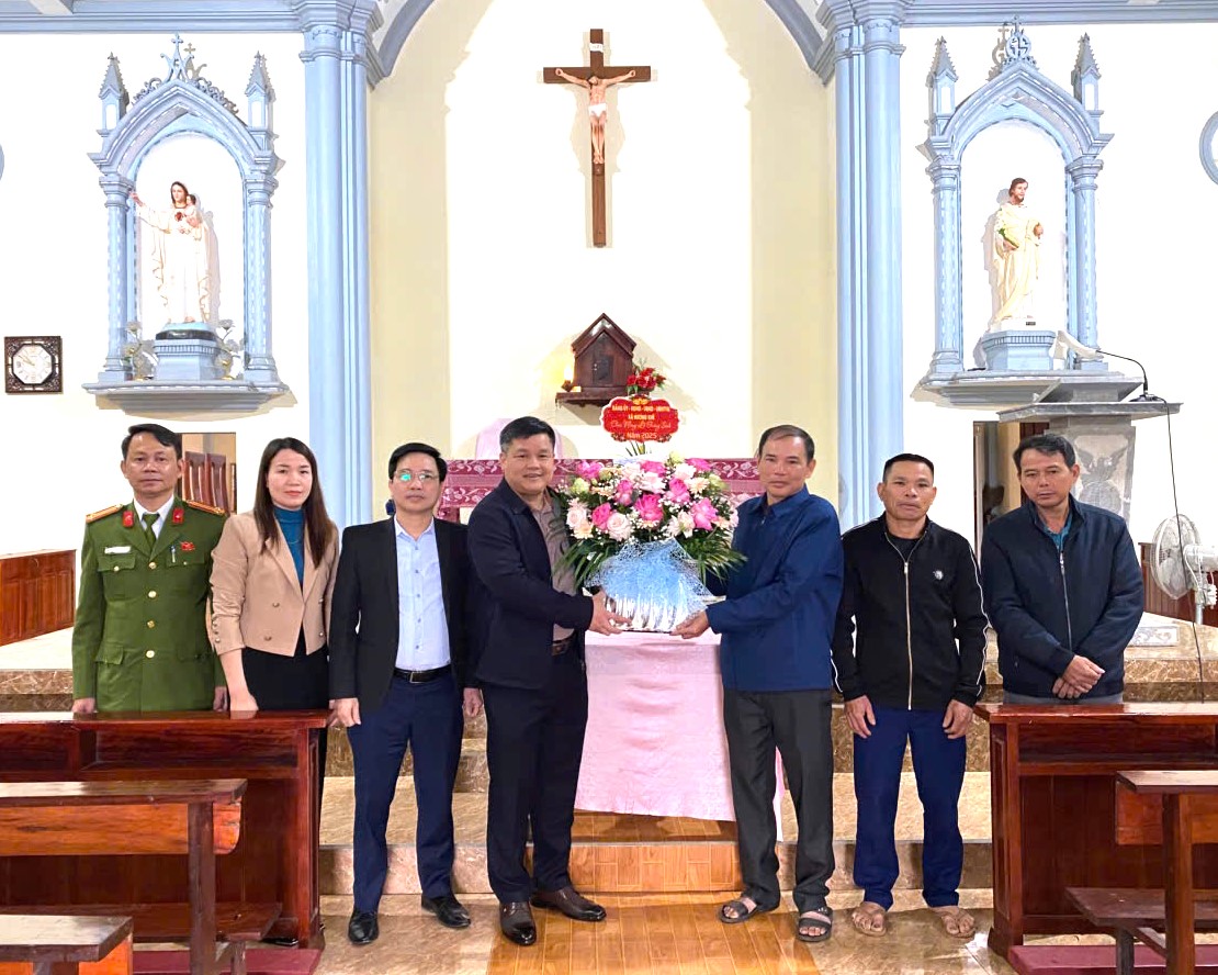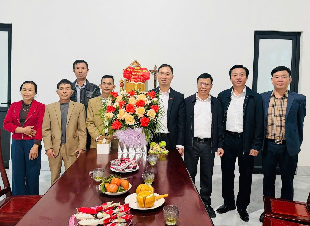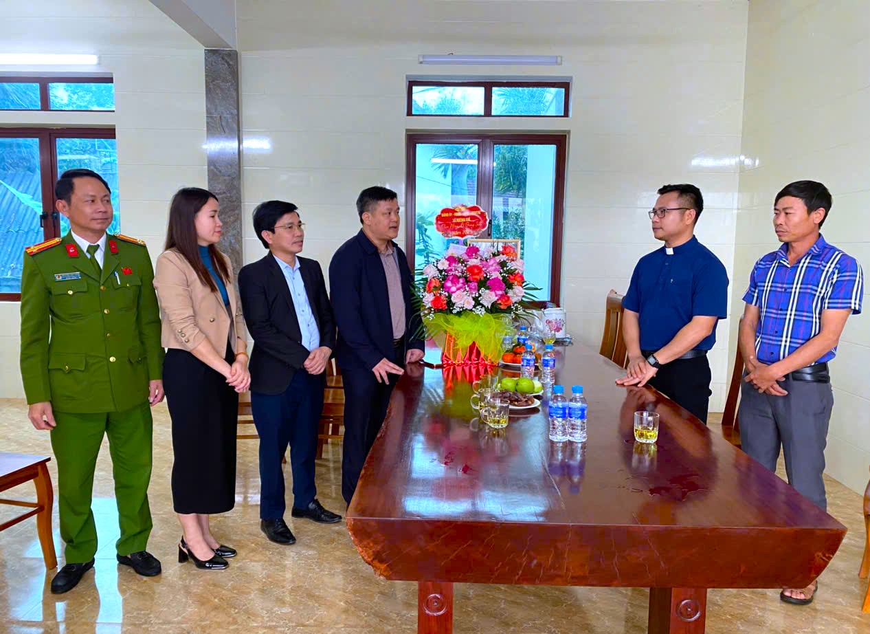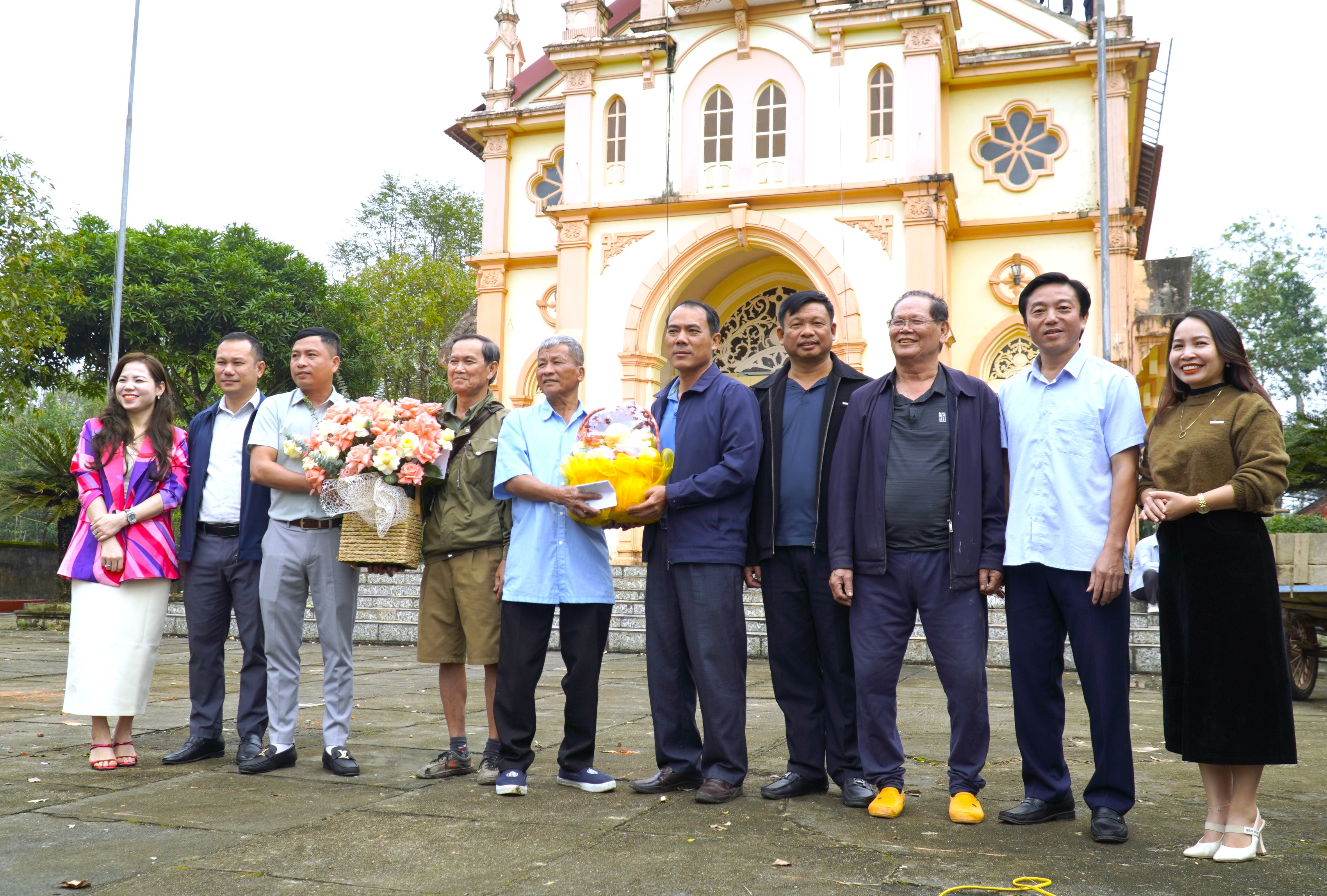 Đồng chí Trần Quang Nhật - Ủy viên BCH Đảng bộ tỉnh - Bí thư Đảng ủy - Chủ tịch HĐND xã và các đồng chí trong đoàn chúc mừng các giáo họ thuộc giáo xứ Tân Phương.