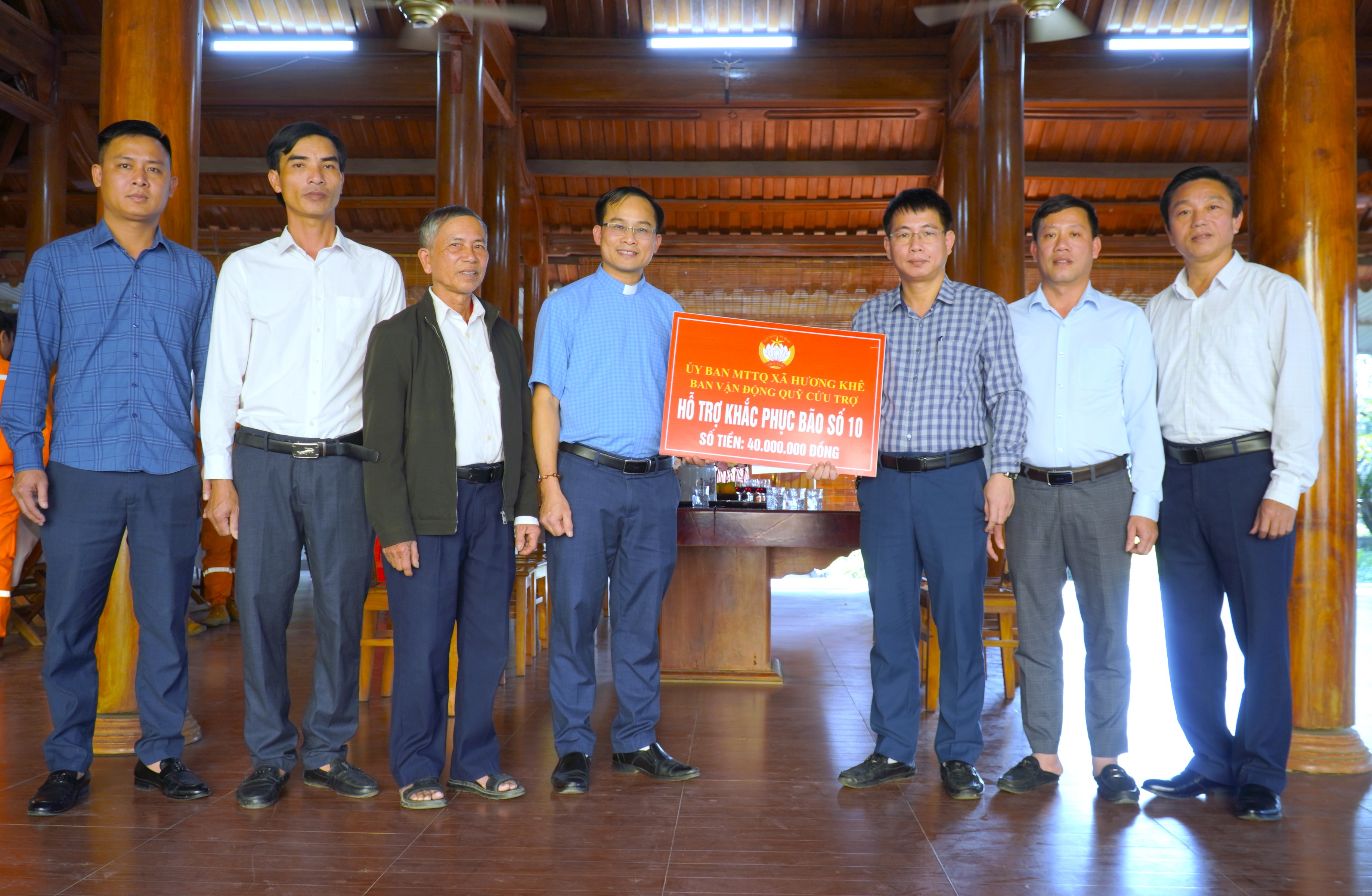 Dịp này Ủy ban MTTQ Việt Nam xã Hương Khê trao tiền 40 tiệu đồng hỗ trợ khắc phục thiệt hại do bão số 10 gây ra cho giáo xứ Thượng Bình.
