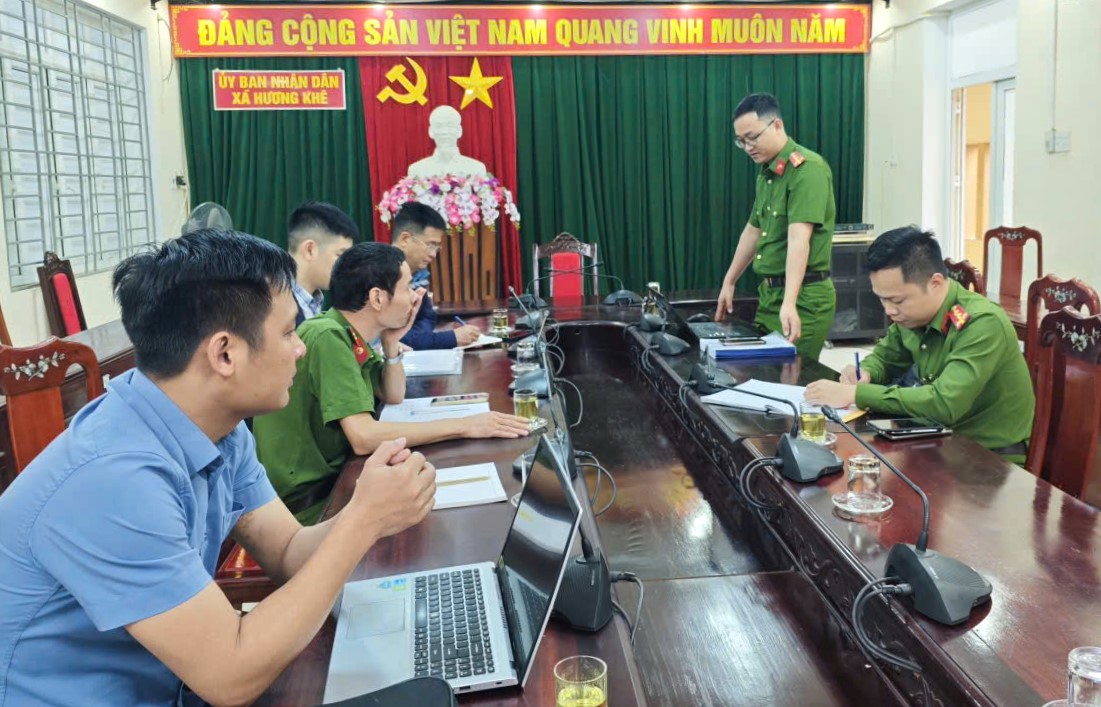 Lãnh đạo xã Hương Khê làm việc với Đội Chữa cháy và Cứu nạn cứu hộ khu vực Hương Khê về công tác đảm bảo an toàn PCCC.
