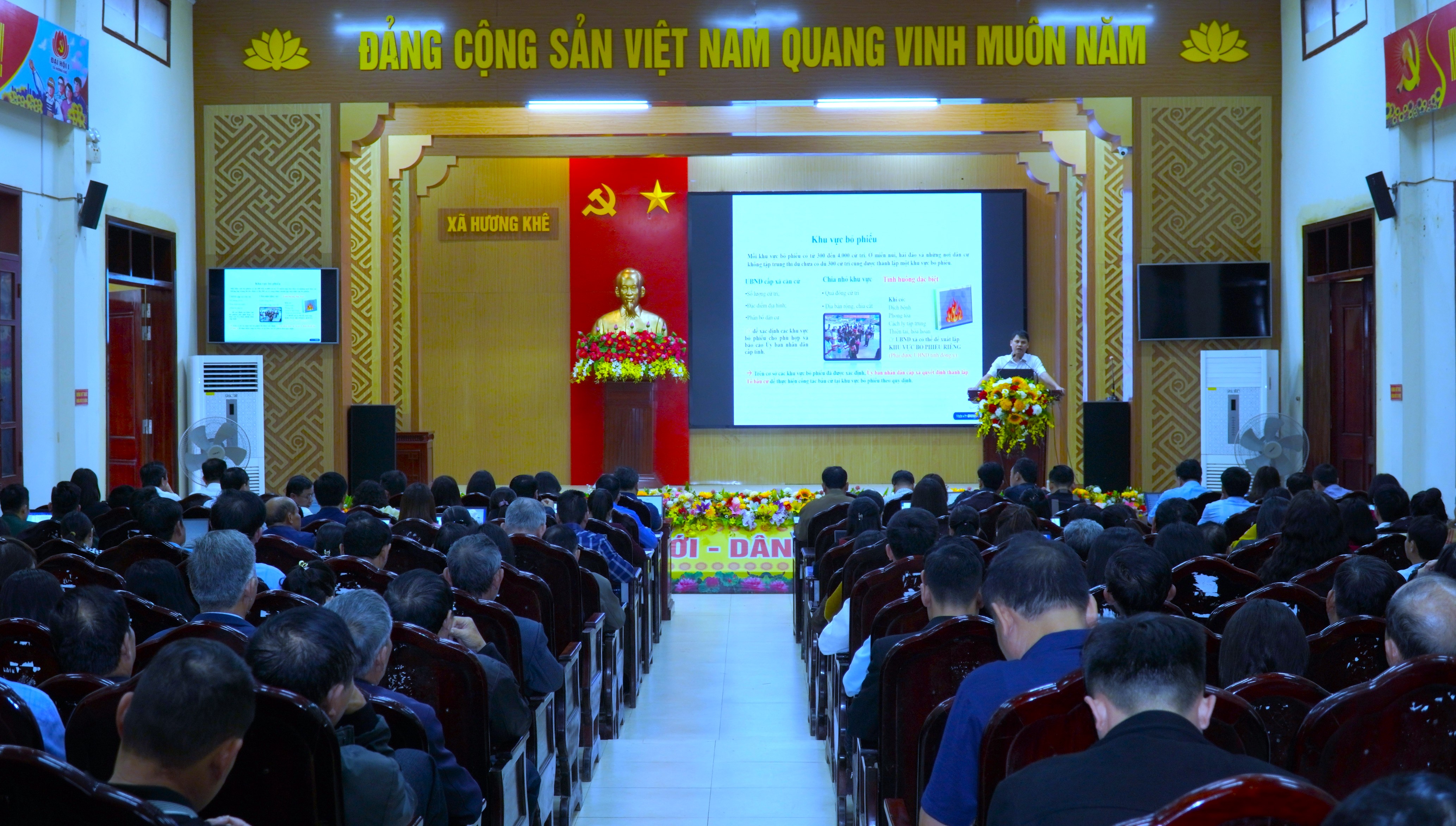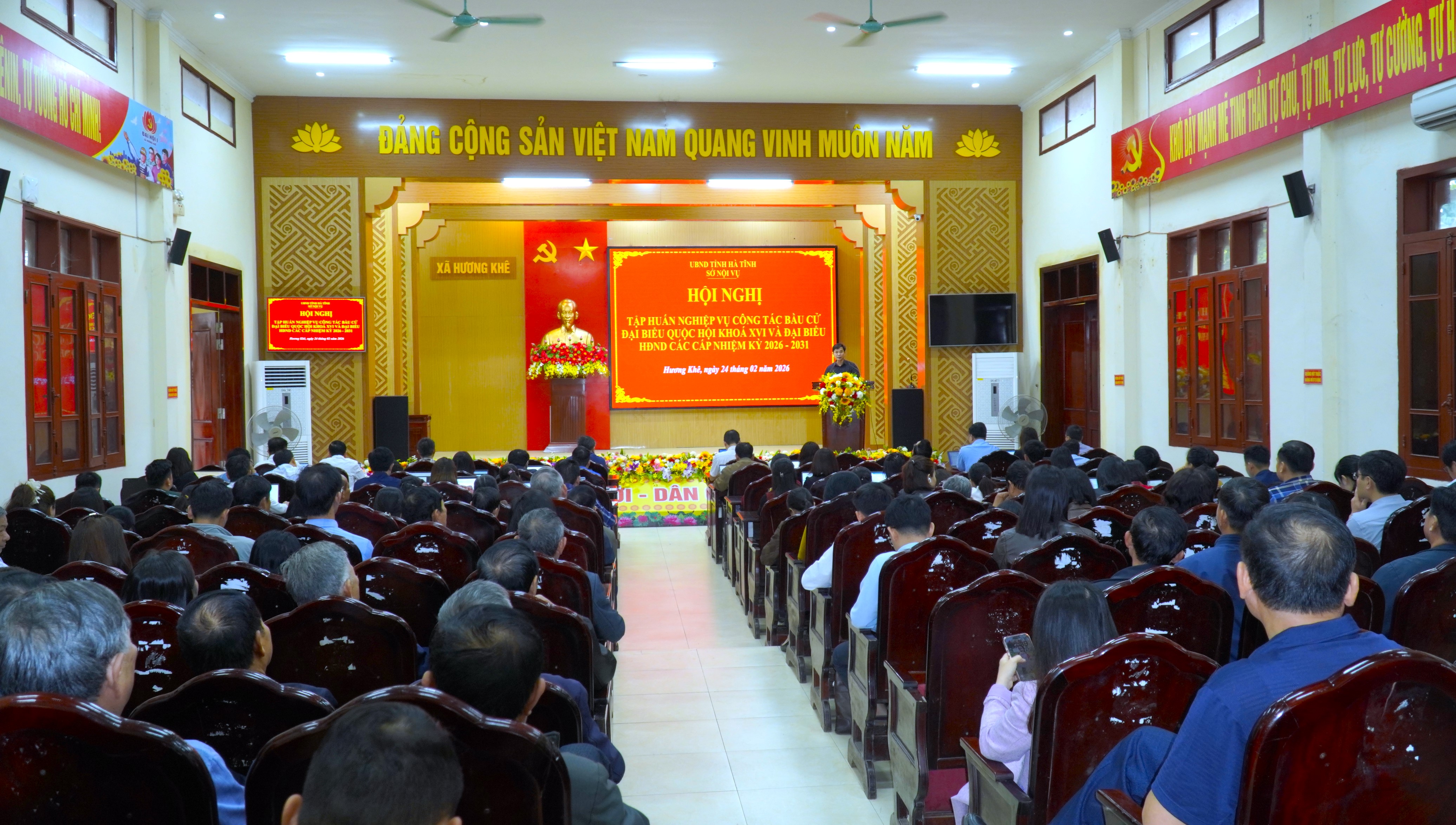 Hội nghị được tổ chức cho đơn vị bầu cử số 12 gồm 7 xã: Hương Khê, Hương Phố, Hương Đô, Hương Xuân, Hương Bình, Phúc Trạch và Hà Linh. Tham dự và trực tiếp truyền đạt nội dung tập huấn có đồng chí Đoàn Xuân Hoài, Báo cáo viên pháp luật cấp tỉnh, Phó Chánh Văn phòng Sở Nội vụ.