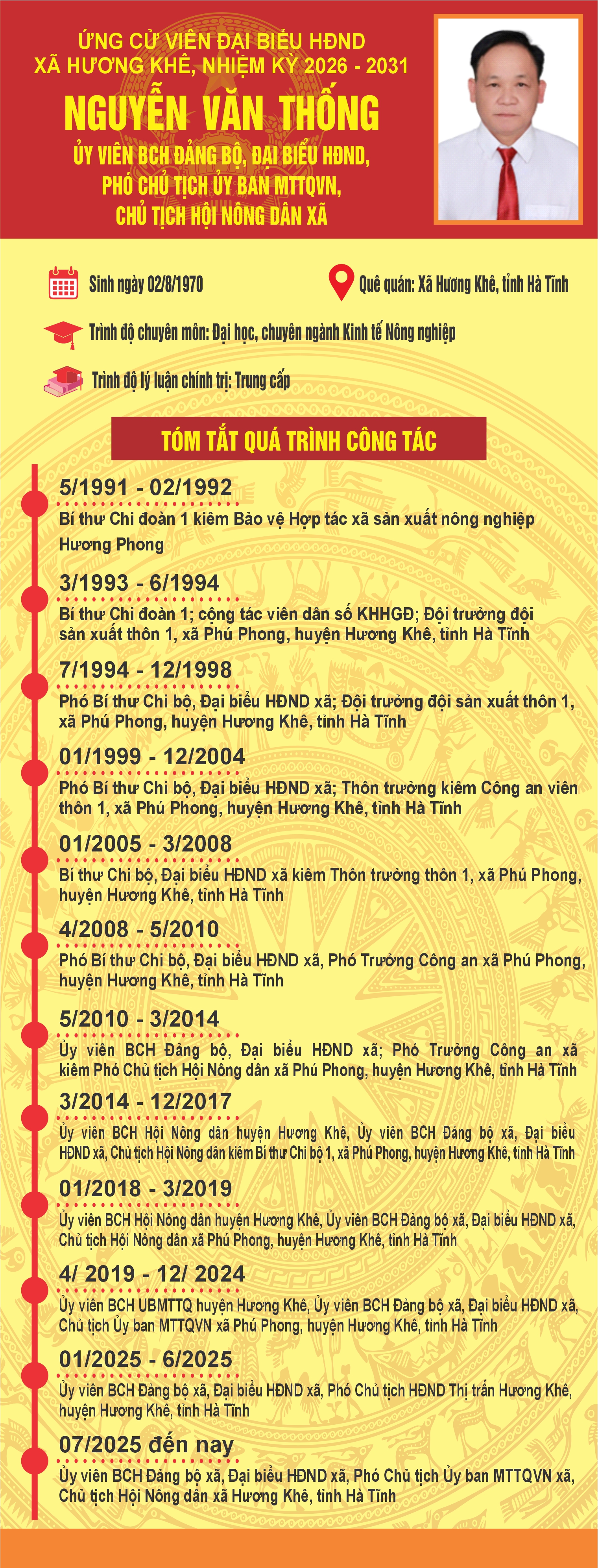 Tiểu sử tóm tắt ông Nguyễn Văn Thống ứng cử viên đại biểu HĐND xã Hương Khê khóa II, nhiệm kỳ 2026 - 2031