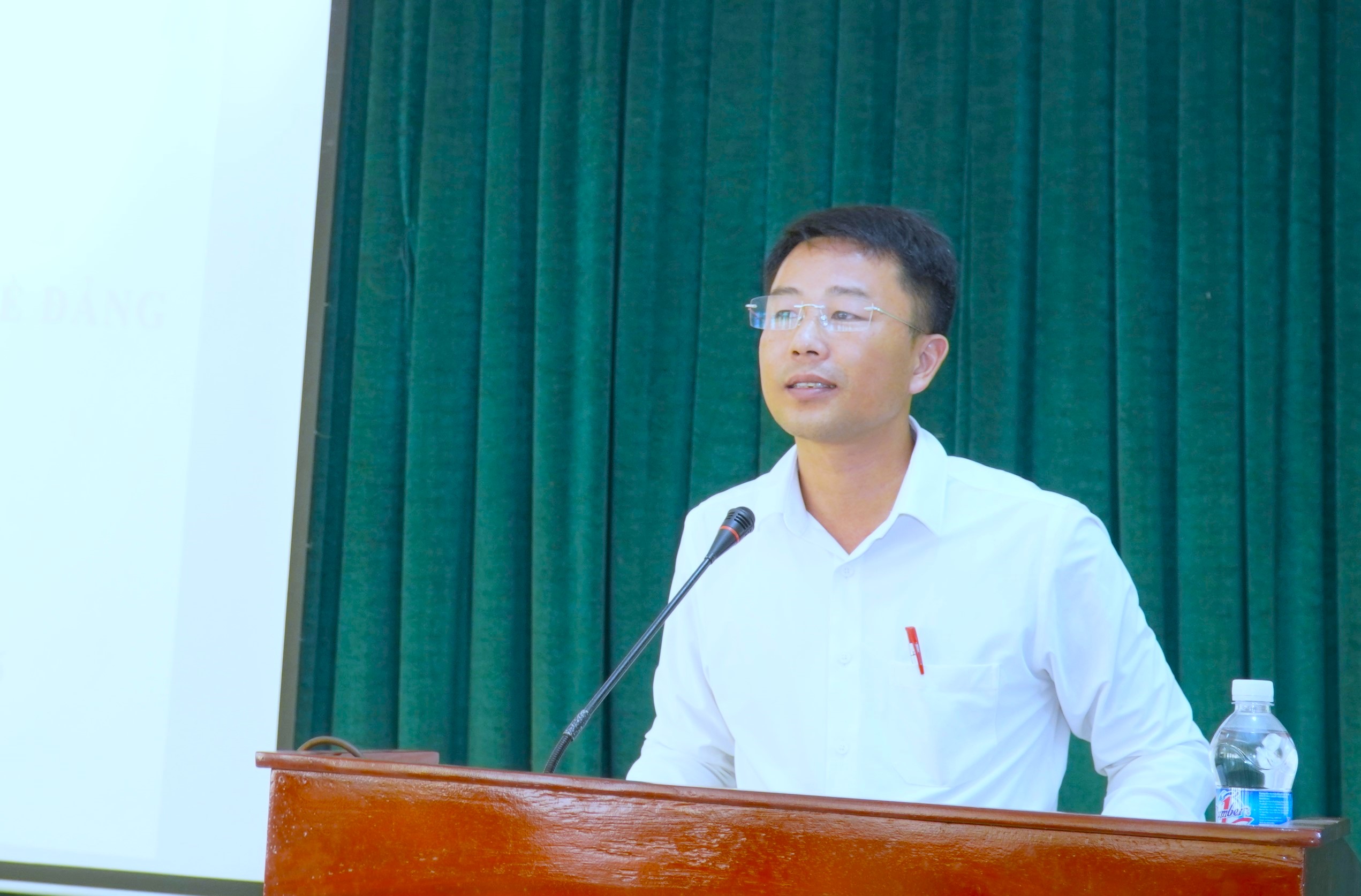 Đồng chí Phan Văn Trí - Phó Giám đốc Trung tâm Chính trị xã Hương Khê khai giảng lớp học.