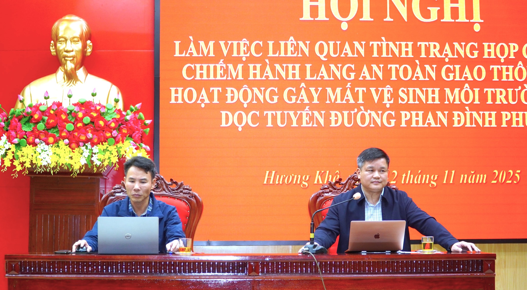 Tham dự Hội nghị có các phòng, ban, ngành liên quan, Bí thư, Thôn trưởng, Trưởng Ban công tác mặt trận, Thôn đội trưởng, Tổ an ninh trật tự thôn 1, 2, 3, 4; các cá nhân, hộ gia đình có mặt bằng dọc đường Phan Đình Phùng cho thuê kinh doanh hoặc trực tiếp kinh doanh, buôn bán 2 bên tuyến đường Phan Đình Phùng.