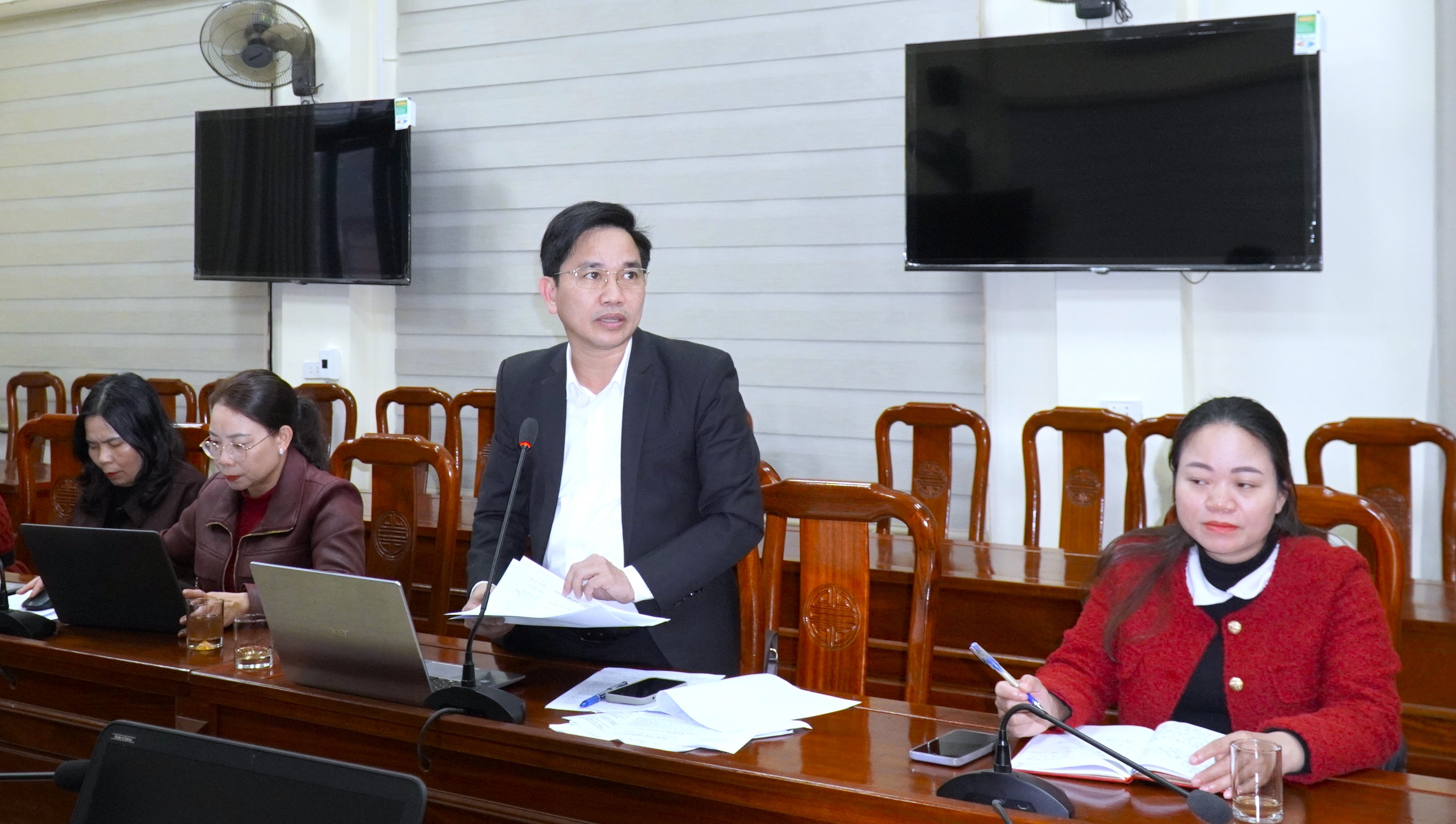 Đồng chí Nguyễn Sỹ Thông, Trưởng Phòng Văn hóa - Xã hội phát biểu.