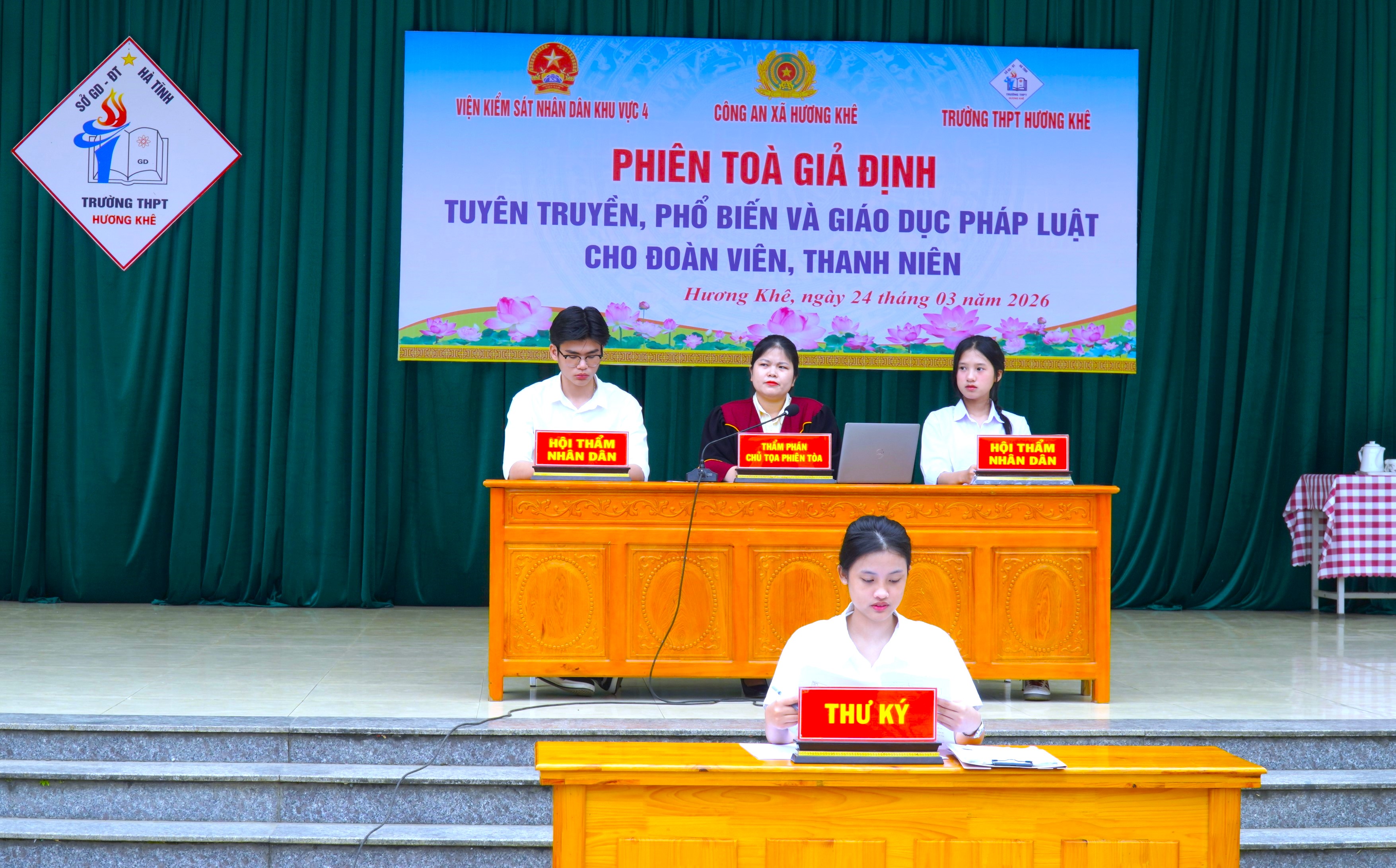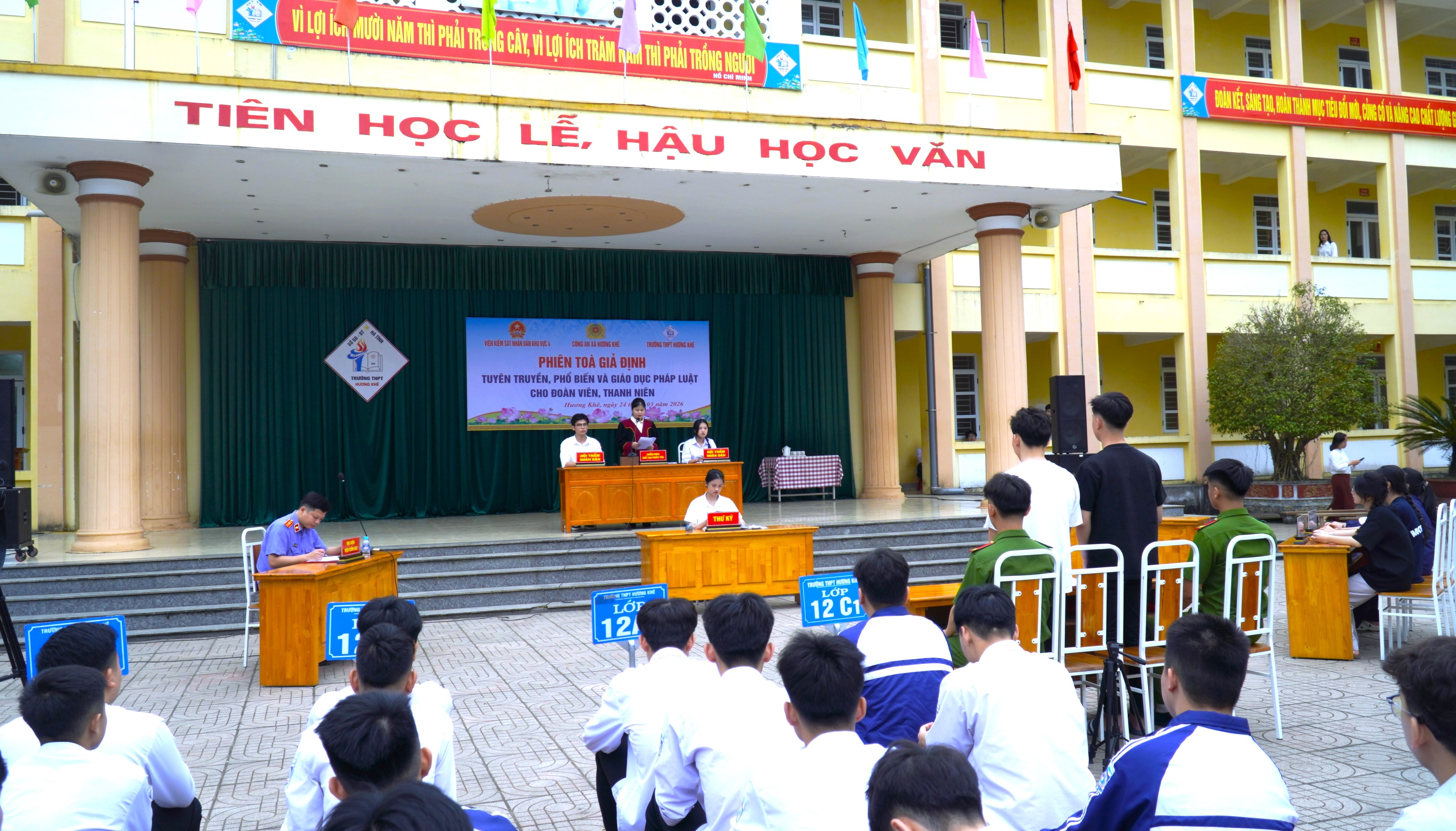 Cùng dự, chứng kiến có đồng chí Nguyễn Thế Hoàng, Viện Trưởng Viện KSND khu vực 4; Đại diện Công an xã; Ban giám hiệu, cán bộ, giáo viên và học sinh Trường THPT Hương Khê.