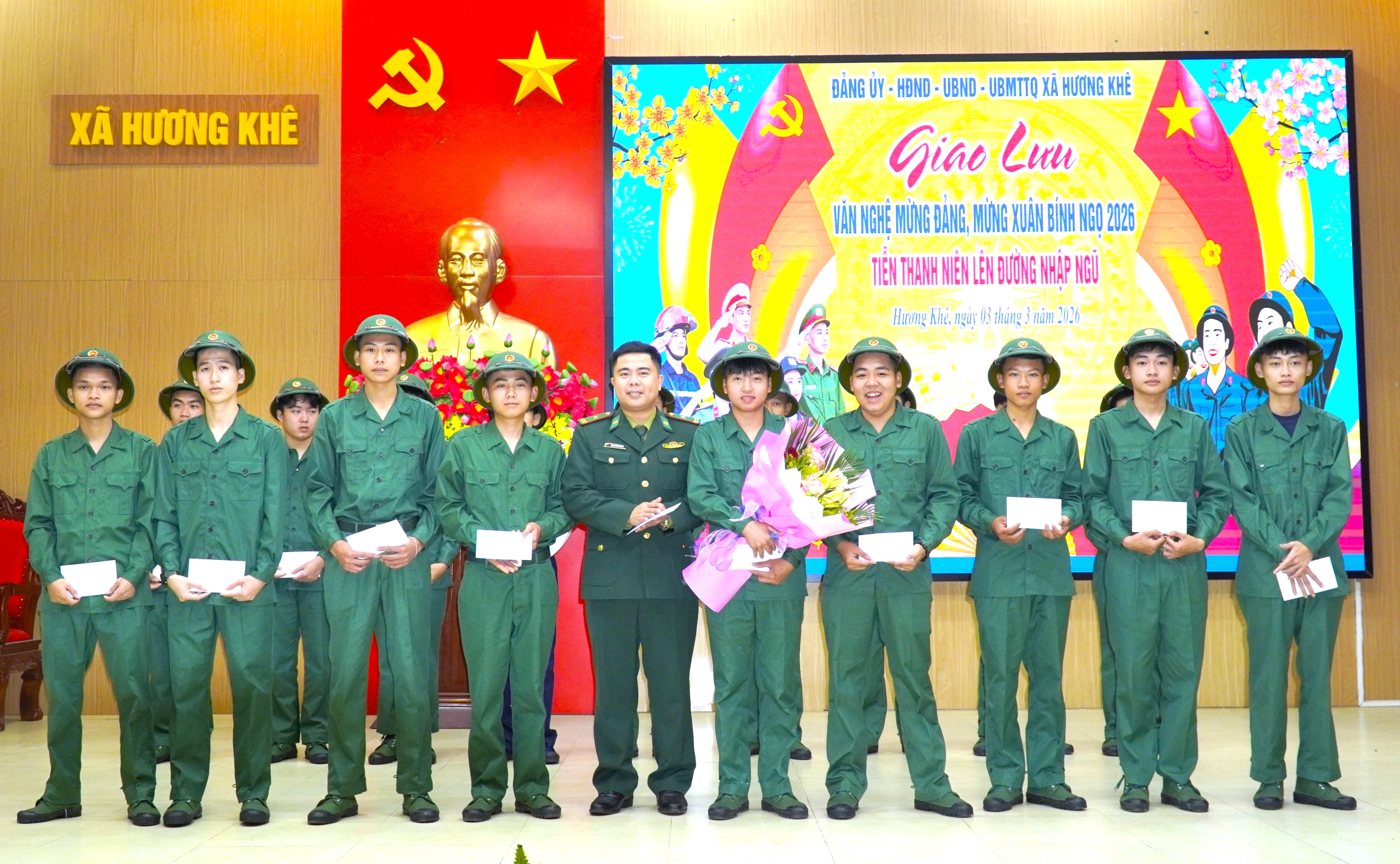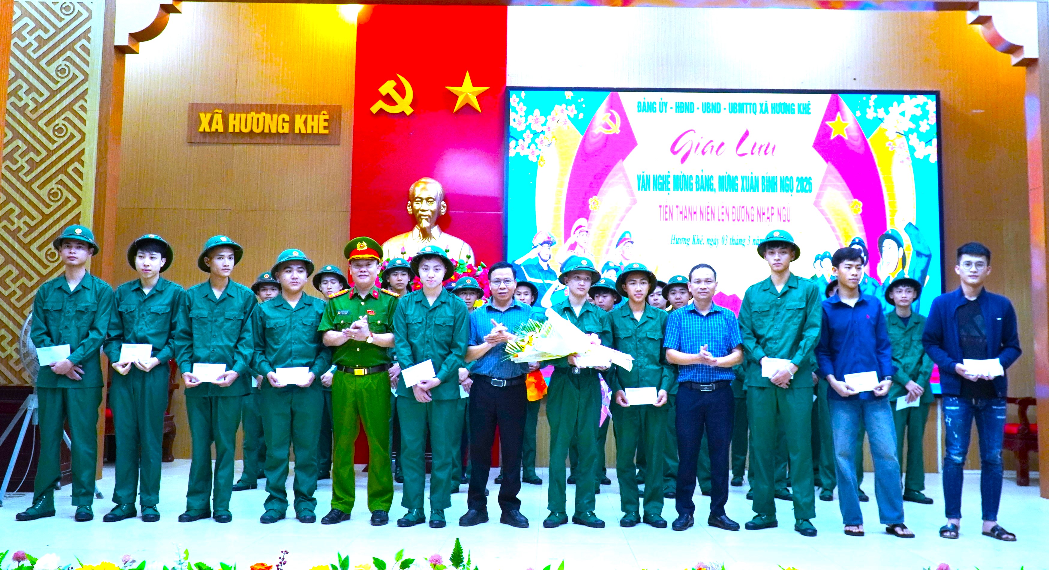 Buổi gặp mặt khép lại trong không khí trang trọng, ấm áp và đầy xúc động. Kết thúc chương trình, các đồng chí lãnh đạo xã cùng các tân binh nắm tay nhau hát vang bài hát “Hát mãi khúc quân hành”, tiếp thêm niềm tin và khí thế để tuổi trẻ Hương Khê vững bước lên đường, thực hiện nghĩa vụ thiêng liêng đối với Tổ quốc.