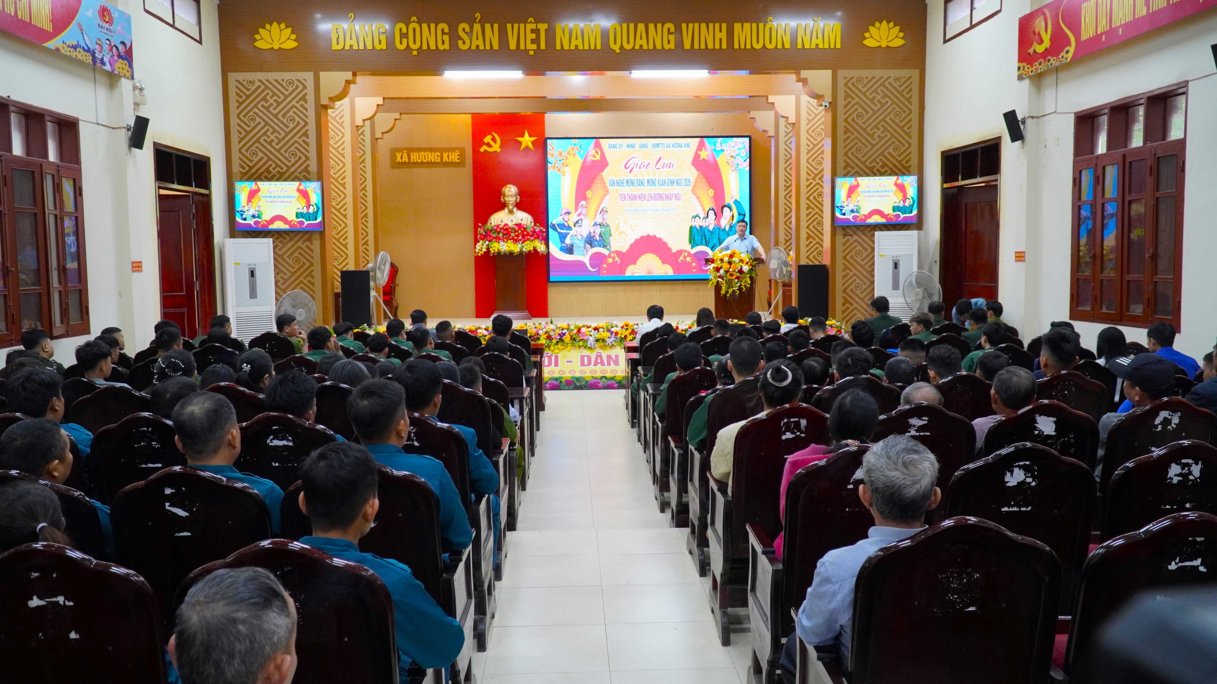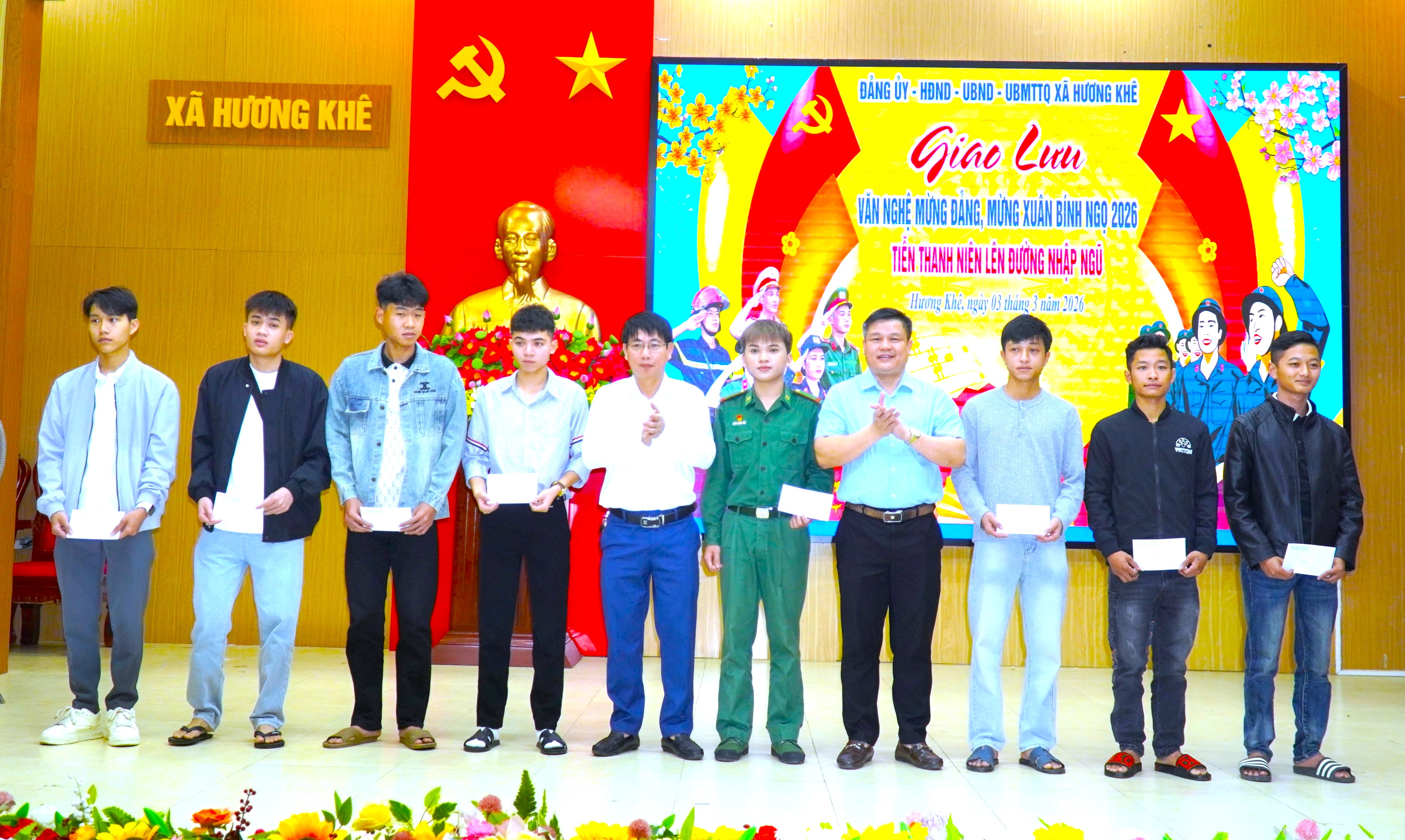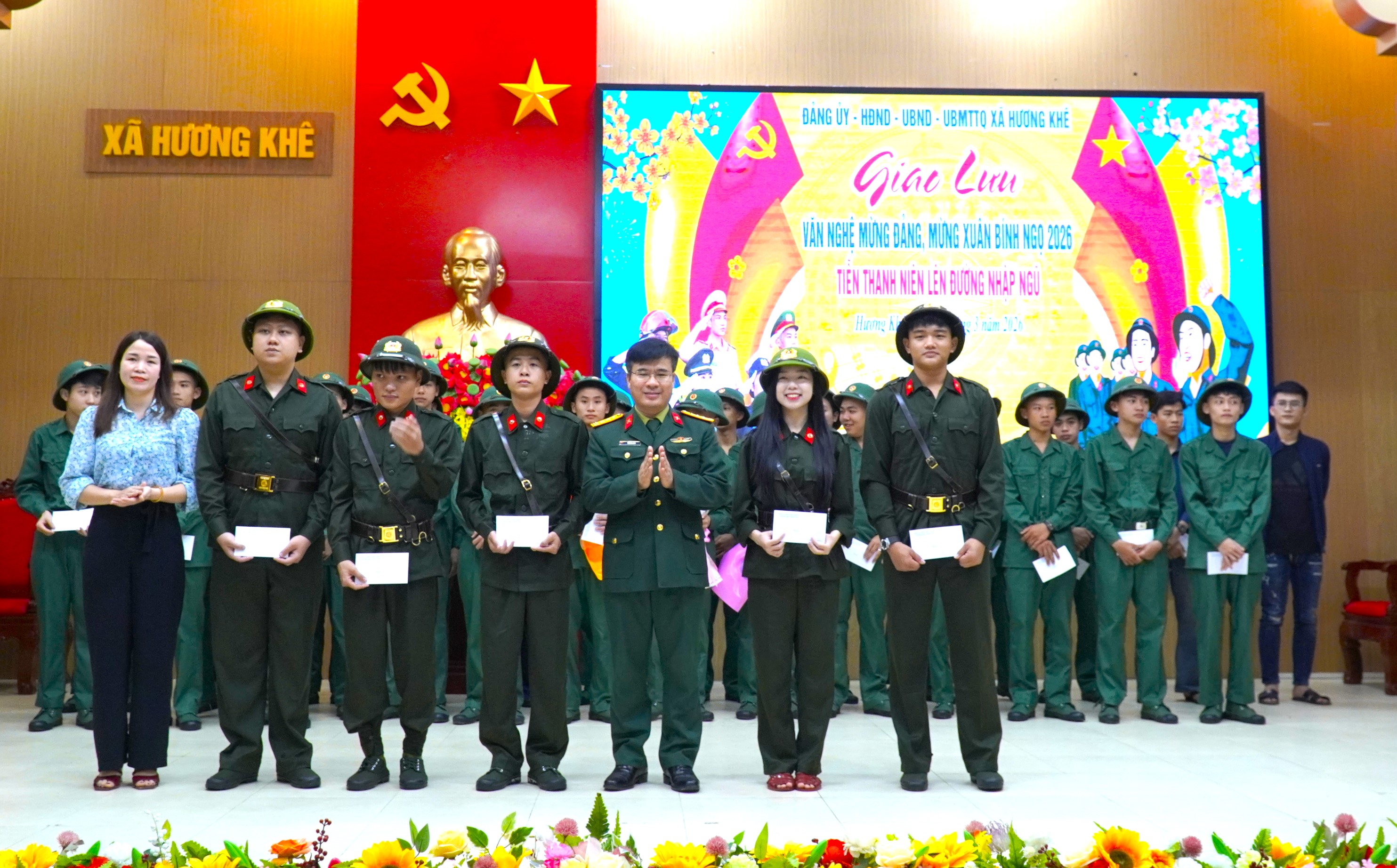 Chương trình giao lưu văn nghệ diễn ra trong không khí vui tươi, phấn khởi với 5 tiết mục hát, múa đặc sắc ca ngợi Đảng Cộng sản Việt Nam, Chủ tịch Hồ Chí Minh kính yêu, tình yêu quê hương đất nước và truyền thống anh hùng của dân tộc. Các tiết mục do diễn viên không chuyên đến từ các thôn và trường học trên địa bàn biểu diễn đã tạo nên không khí sôi nổi, ấm áp, góp phần động viên, khích lệ tinh thần các thanh niên trước lúc lên đường làm nhiệm vụ xây dựng và bảo vệ Tổ quốc.