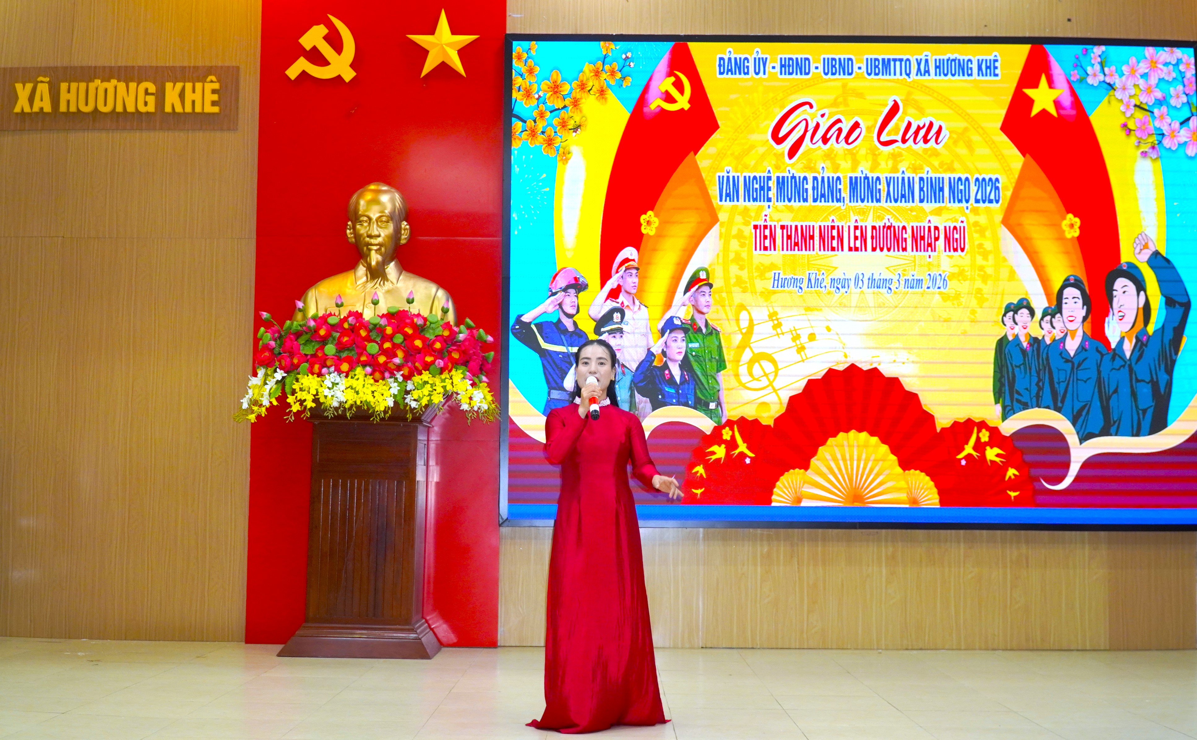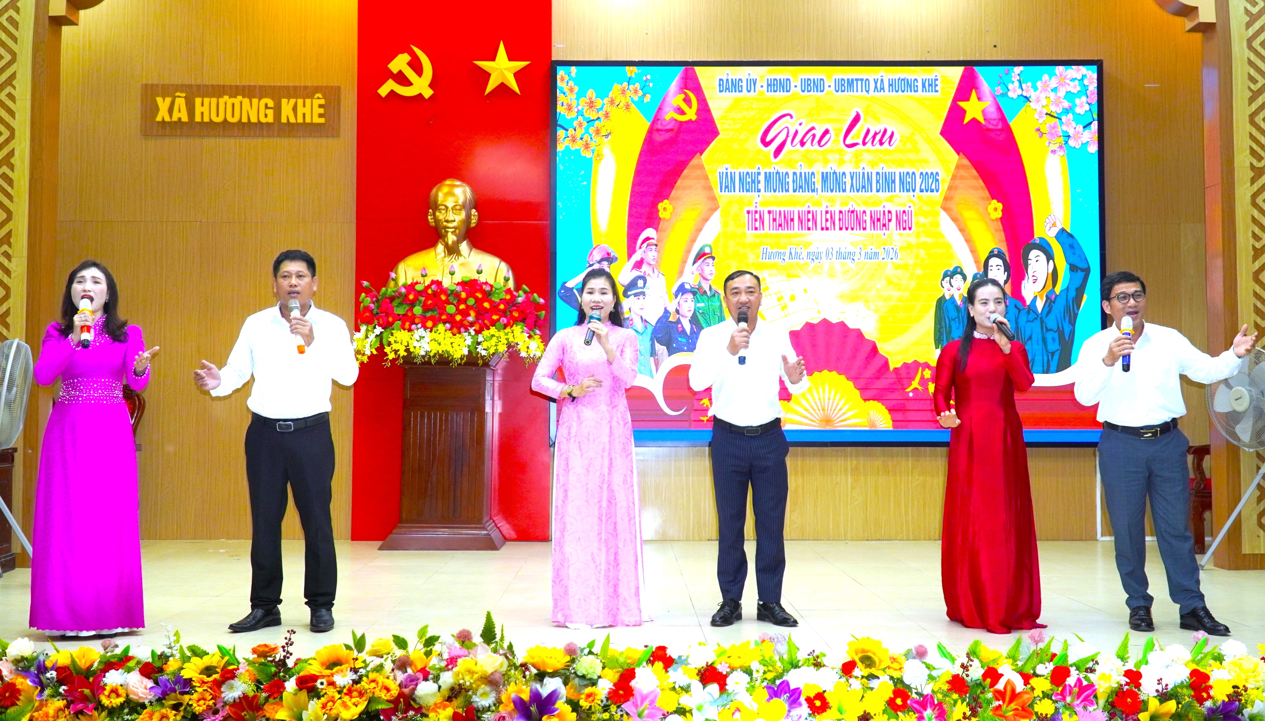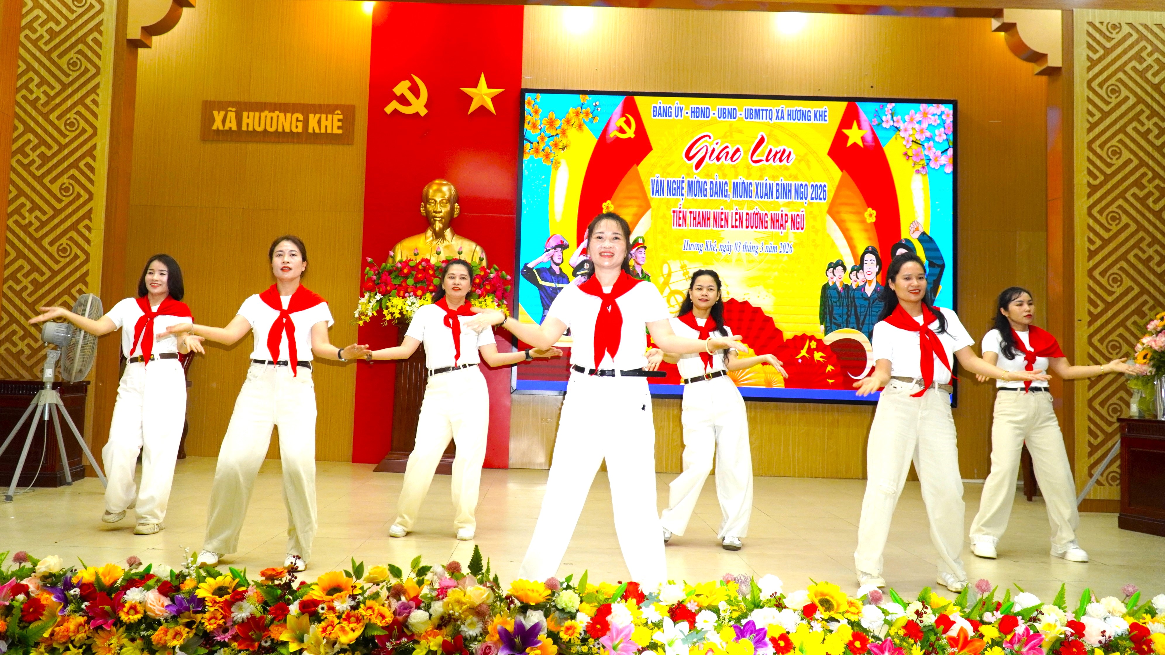 Chương trình giao lưu văn nghệ diễn ra trong không khí vui tươi, phấn khởi với 5 tiết mục hát, múa đặc sắc ca ngợi Đảng Cộng sản Việt Nam, Chủ tịch Hồ Chí Minh kính yêu, tình yêu quê hương đất nước và truyền thống anh hùng của dân tộc. Các tiết mục do diễn viên không chuyên đến từ các thôn và trường học trên địa bàn biểu diễn đã tạo nên không khí sôi nổi, ấm áp, góp phần động viên, khích lệ tinh thần các thanh niên trước lúc lên đường làm nhiệm vụ xây dựng và bảo vệ Tổ quốc.