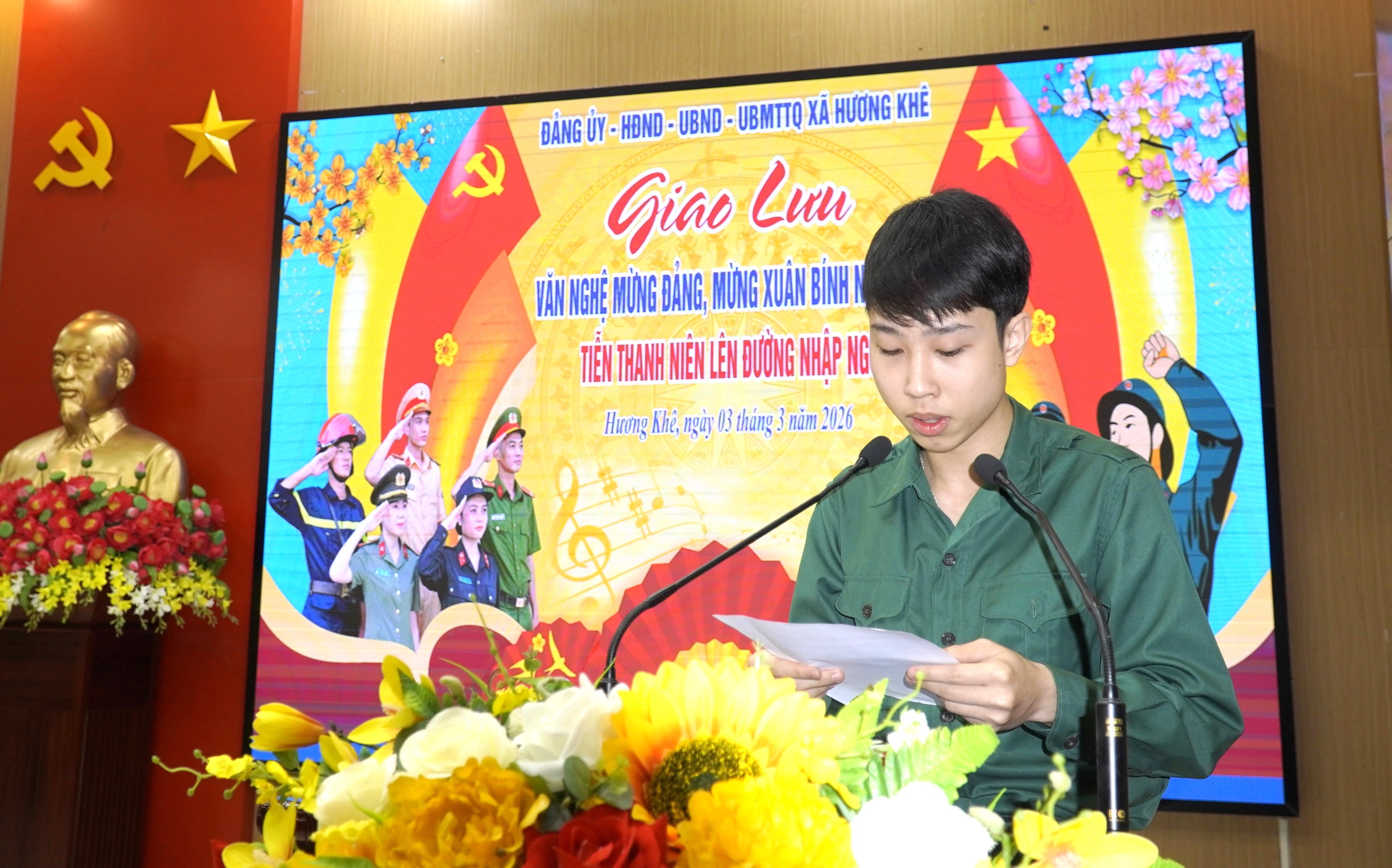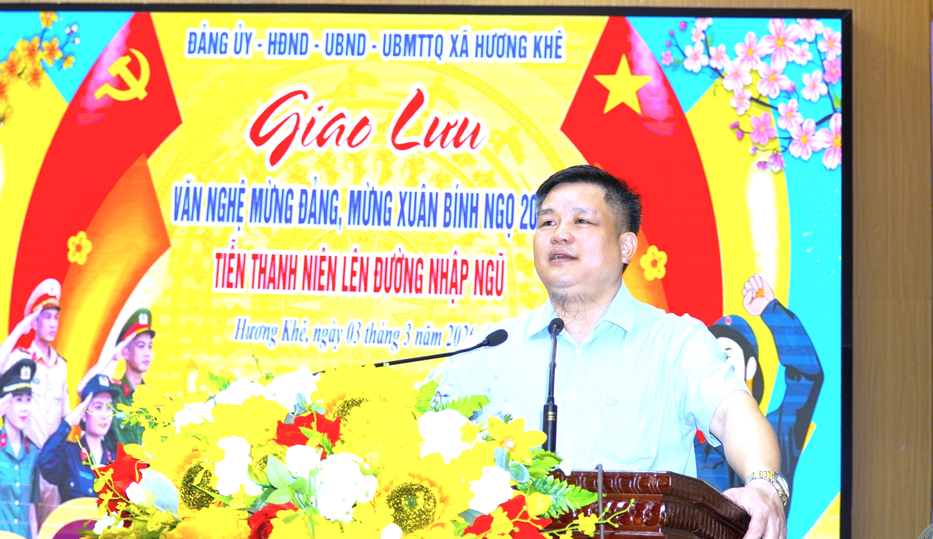 Phát biểu tại chương trình, đồng chí Trần Quốc Bảo – Phó Bí thư Đảng ủy, Chủ tịch UBND xã ghi nhận, biểu dương tinh thần trách nhiệm, ý chí sẵn sàng lên đường của các thanh niên. Thực hiện nghĩa vụ quân sự vừa là trách nhiệm, vừa là niềm vinh dự, tự hào của tuổi trẻ, tiếp nối truyền thống anh hùng của quê hương. Đảng bộ và Nhân dân tin tưởng các đồng chí sẽ rèn luyện bản lĩnh, chấp hành nghiêm kỷ luật, hoàn thành xuất sắc mọi nhiệm vụ được giao, xứng đáng với niềm tin yêu của cấp ủy, chính quyền và Nhân dân địa phương.