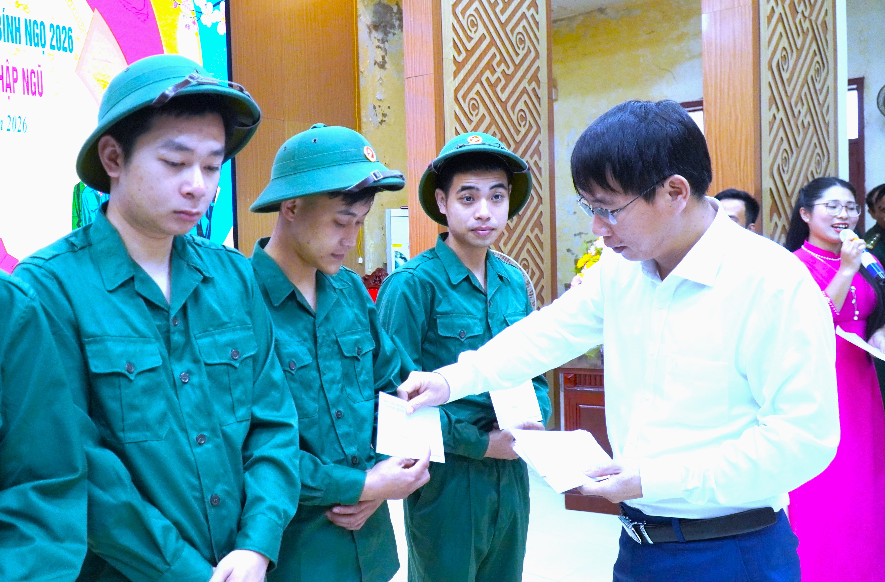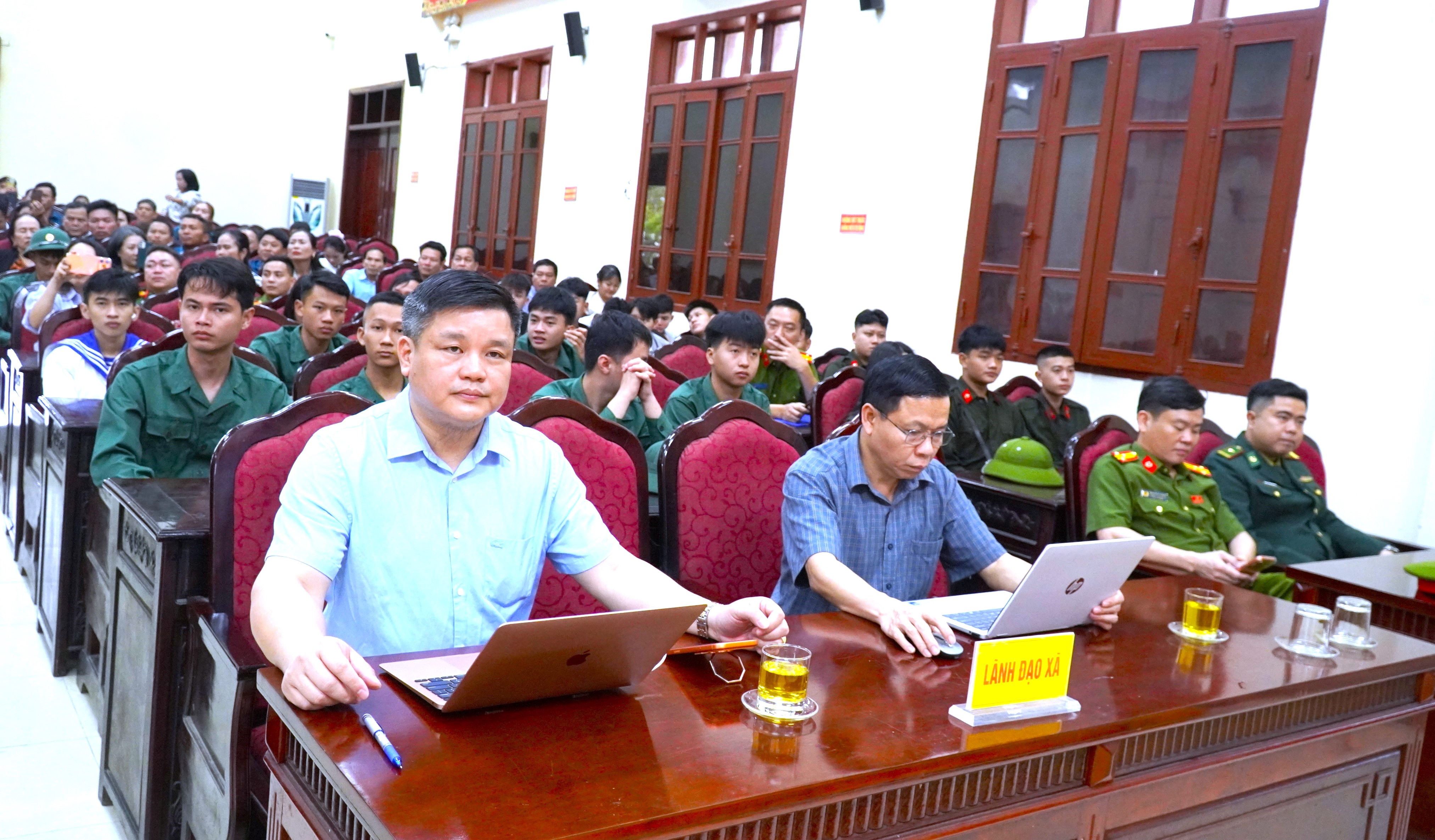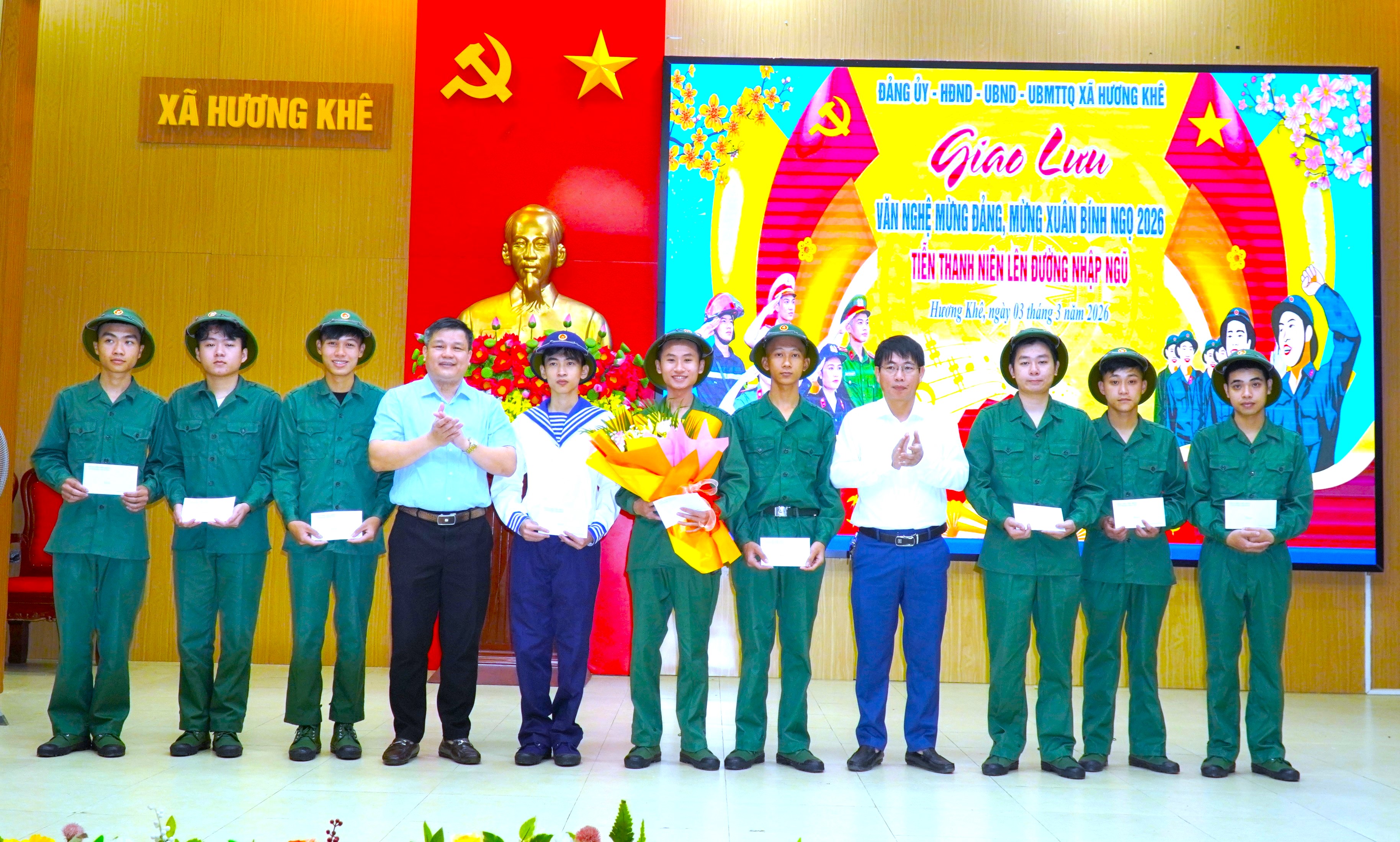 Tham dự chương trình có đồng chí Nguyễn Thế Hùng – Phó Bí thư Thường trực Đảng ủy; đồng chí Trần Quốc Bảo – Phó Bí thư Đảng ủy, Chủ tịch UBND xã; đại diện Ban Xây dựng Đảng ủy, Ủy ban Kiểm tra Đảng ủy; lãnh đạo các ban, ngành, đoàn thể cấp xã; cán bộ, Nhân dân cùng các thanh niên chuẩn bị nhập ngũ, người thân các tân binh và quân nhân hoàn thành nghĩa vụ quân sự, công an trở về địa phương năm 2026.