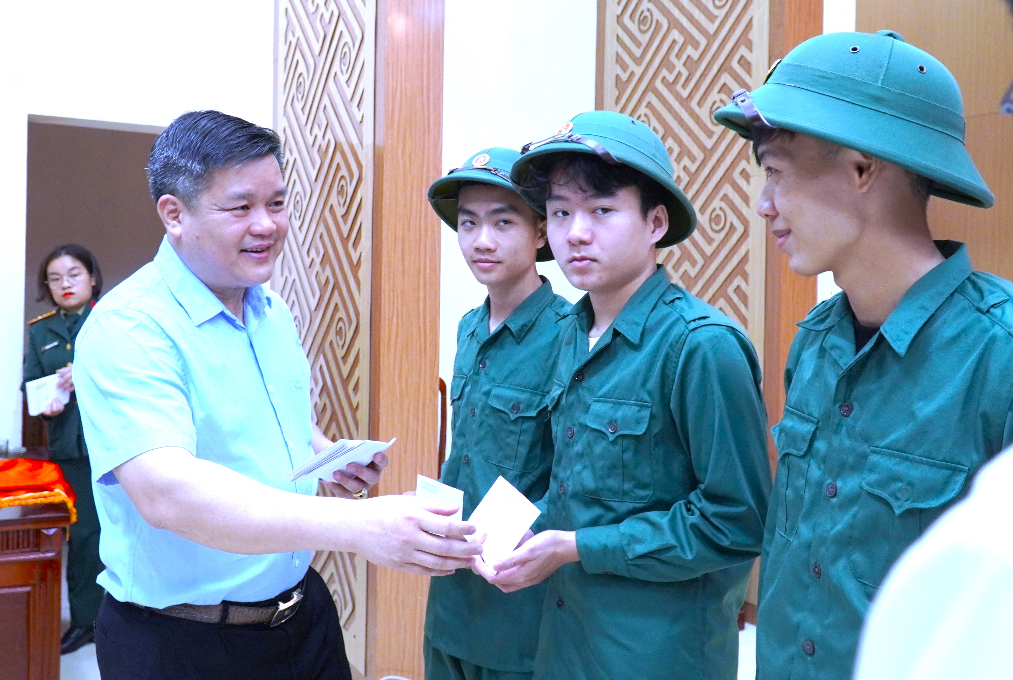 Tại buổi gặp mặt, tân binh Đường Đức Khánh, thôn 7 xã đại diện các tân binh phát biểu thể hiện sự quyết tâm trong học tập, rèn luyện và hứa sẽ hoàn thành tốt các nhiệm vụ được giao trong thời gian tại ngũ.