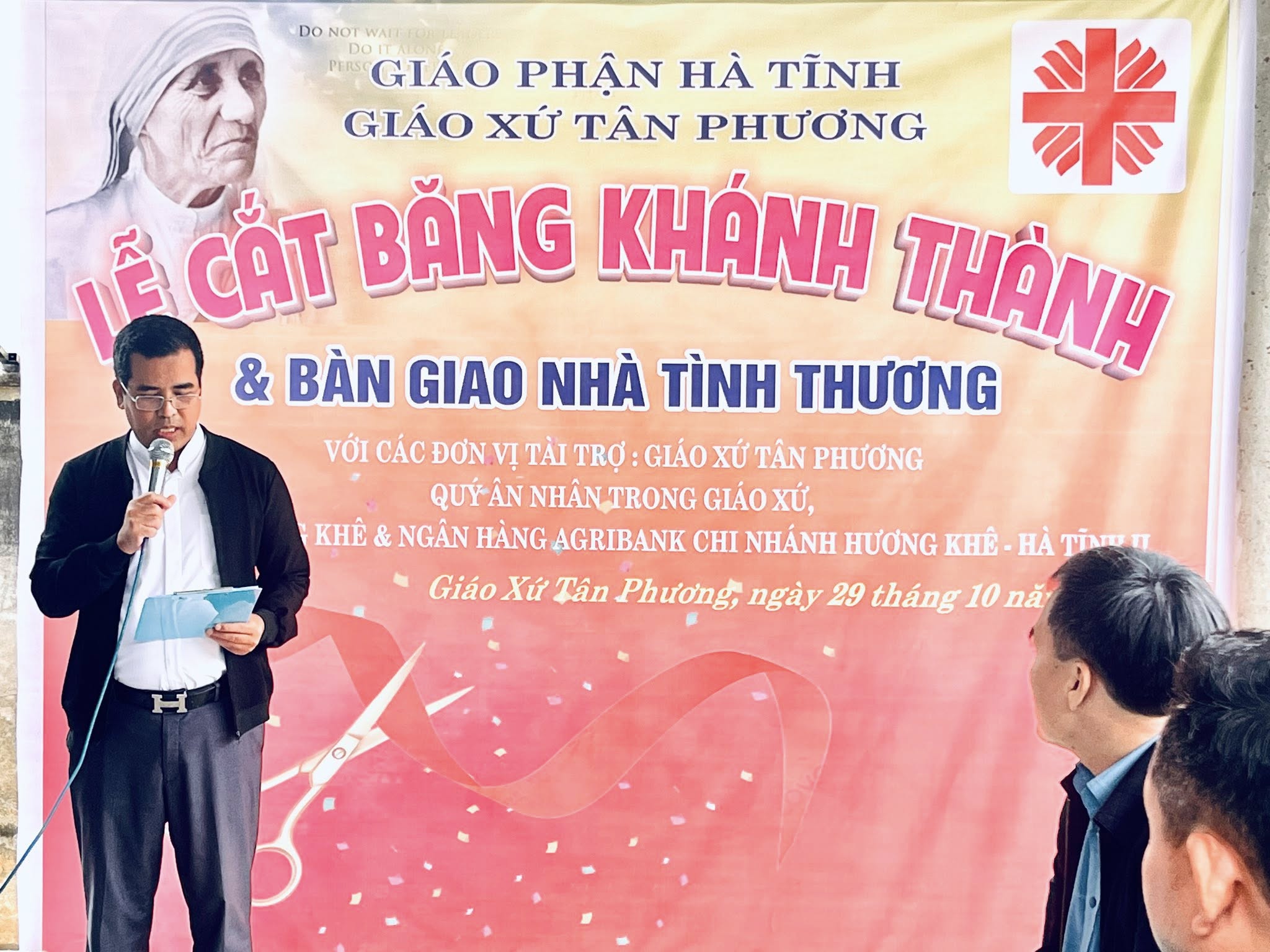 Tiếp lời Đồng chí Nguyễn Xuân Hoan, UVBTV Đảng ủy, PCT UBND xã Hương Khê đã ghi nhận và cảm ơn sự đồng hành, hỗ trợ của Ngân hàng Nông nghiệp và Phát triển nông thôn Việt Nam, Giáo xứ Tân Phương, quý ân nhân trong giáo xứ trong công tác an sinh xã hội, góp phần cùng địa phương thực hiện mục tiêu xóa nhà tạm, nhà dột nát, nâng cao đời sống người dân, đảm bảo an sinh xã hội. Đồng thời mong muốn các gia đình tiếp tục nỗ lực vươn lên, ổn định cuộc sống, xây dựng gia đình ấm no, hạnh phúc.