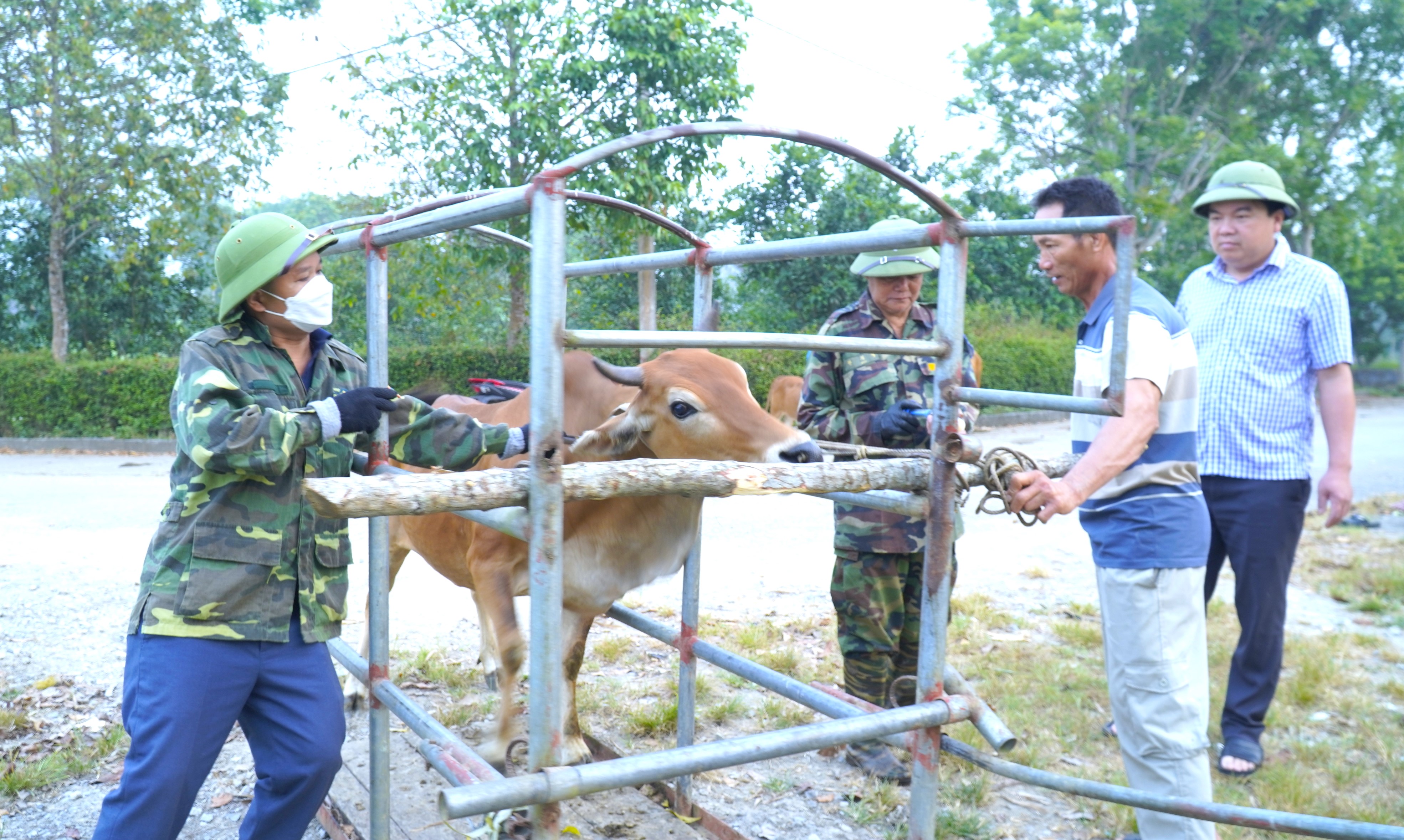 Để đảm bảo tiến độ và hiệu quả, xã đã thành lập 3 tổ tiêm phòng, trực tiếp đến từng thôn để tổ chức tiêm tập trung. Đối với những hộ chăn nuôi gặp khó khăn trong việc đưa gia súc đến điểm tiêm, cán bộ thú y sẽ đến tận hộ gia đình để hỗ trợ tiêm phòng.
